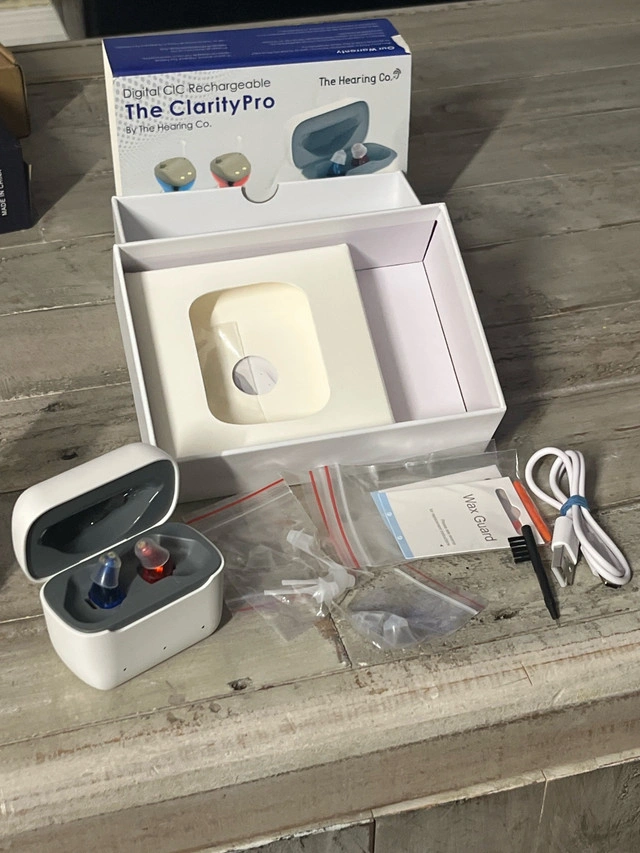 70These are new Clarity Pro hearing aids that offer crystal clear audio with background noise cancellation and no feedback. They feature 11 channel digital sound processing with 3 listening modes. The small and discreet CIC design rests comfortably within your ear. It takes 3 hours to charge fully, with a 20 hour battery life. The charging case can charge on-the-go without a power source up to 4 times. Pick up is in Brampton near Sheridan College.
