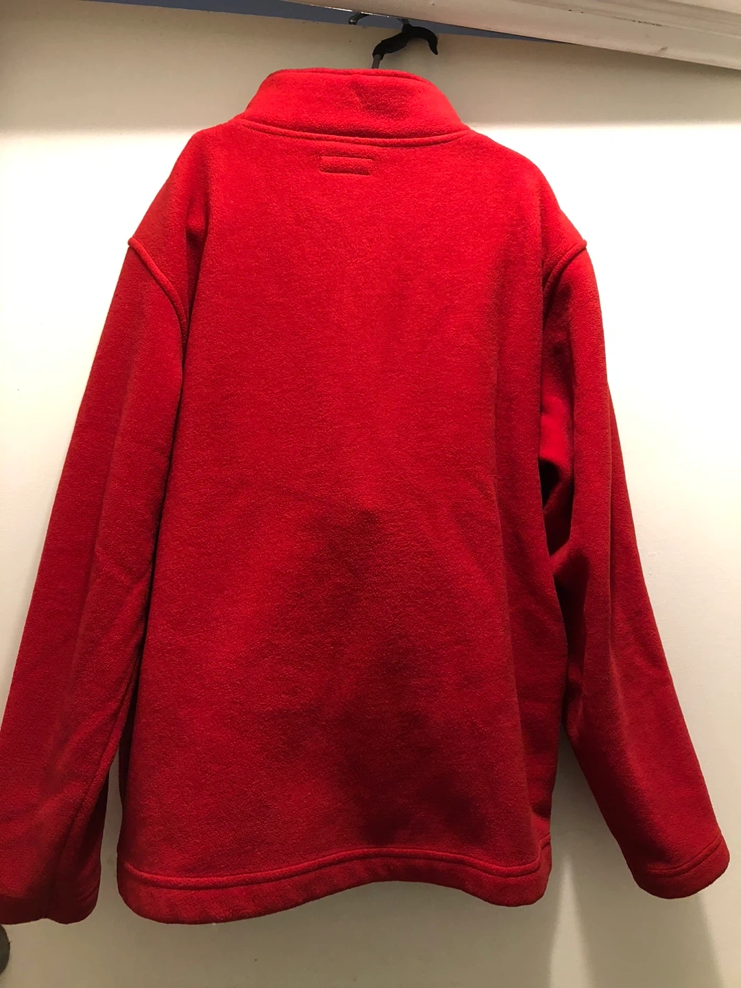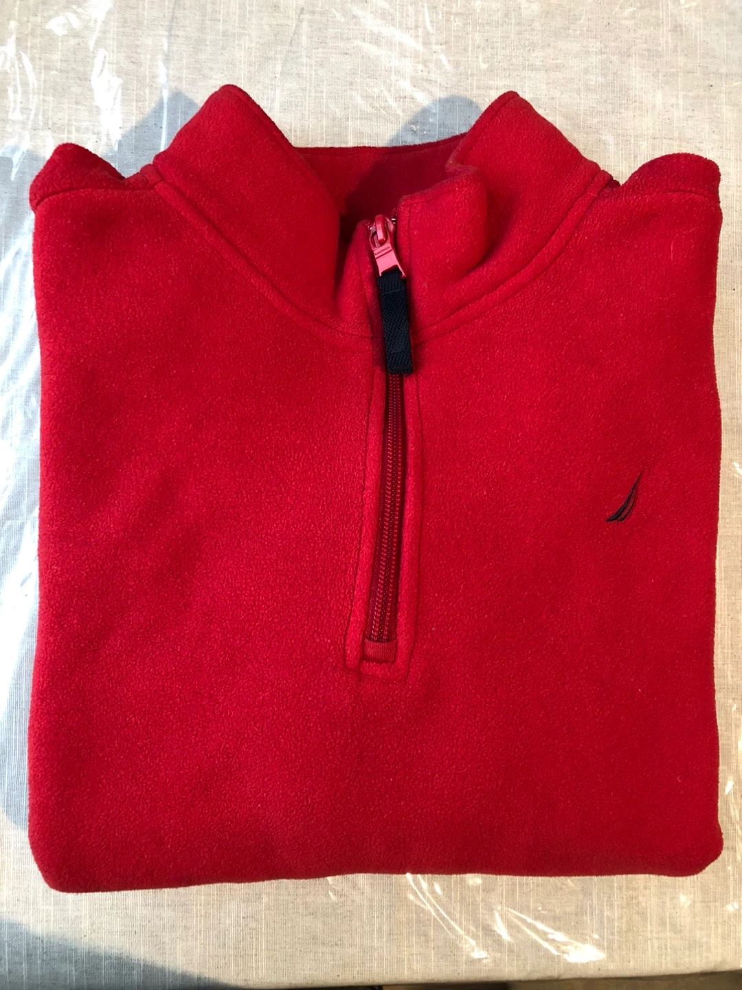 Cozy red Nautica 1/4 zip pullover in good condition! It's made of 100% polyester and is a size XL (12-14). Perfect for keeping warm on chilly days!
