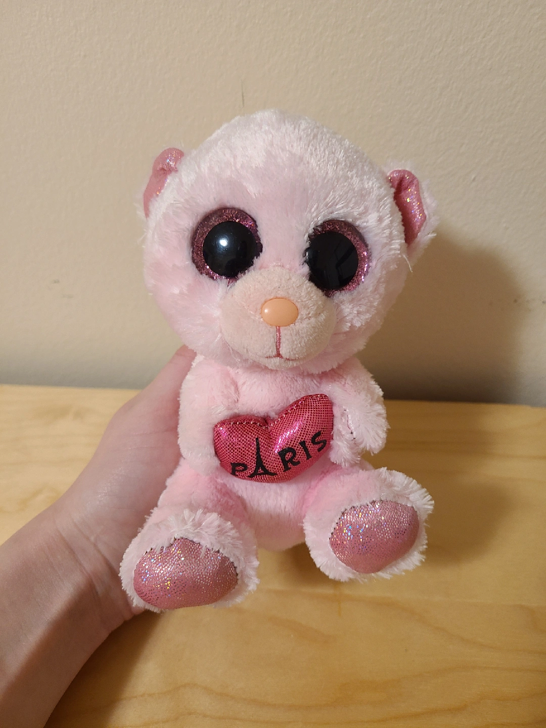 Giving away this small pink bear plushie.