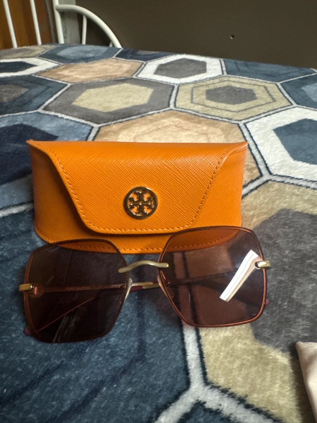 Selling a pair of Tory Burch sunglasses. They come with a bright orange case to keep them safe and scratch-free. Stylish and perfect for sunny days!