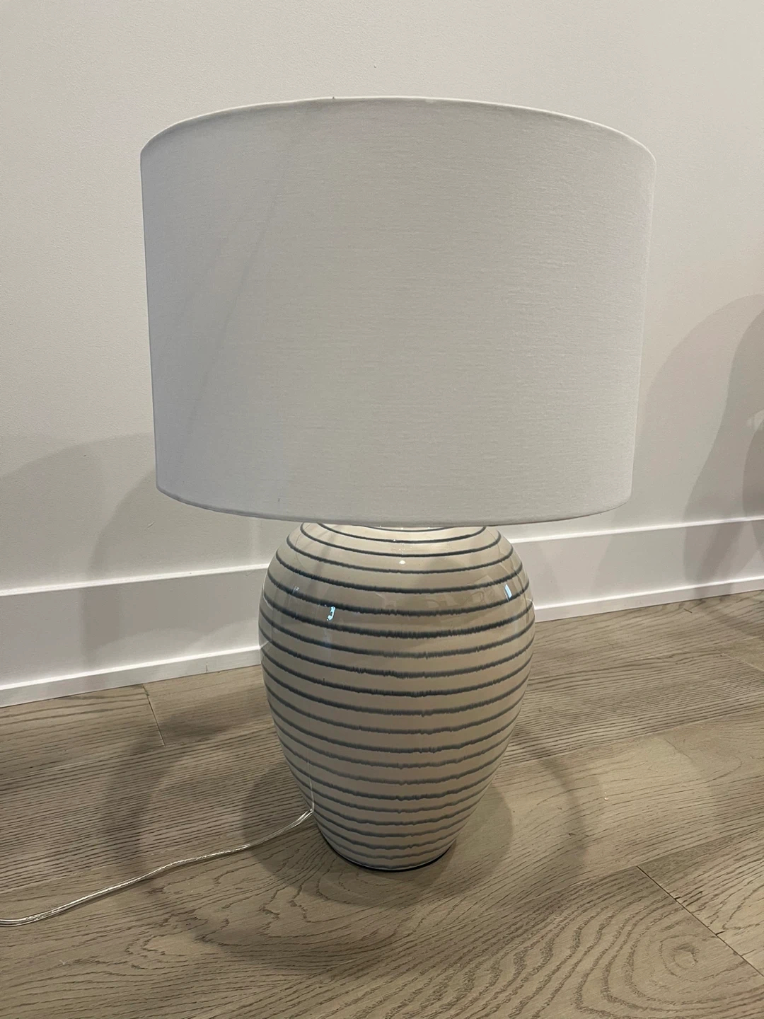 Modern Ceramic Table Lamp – Blue Stripe Design, Brand New