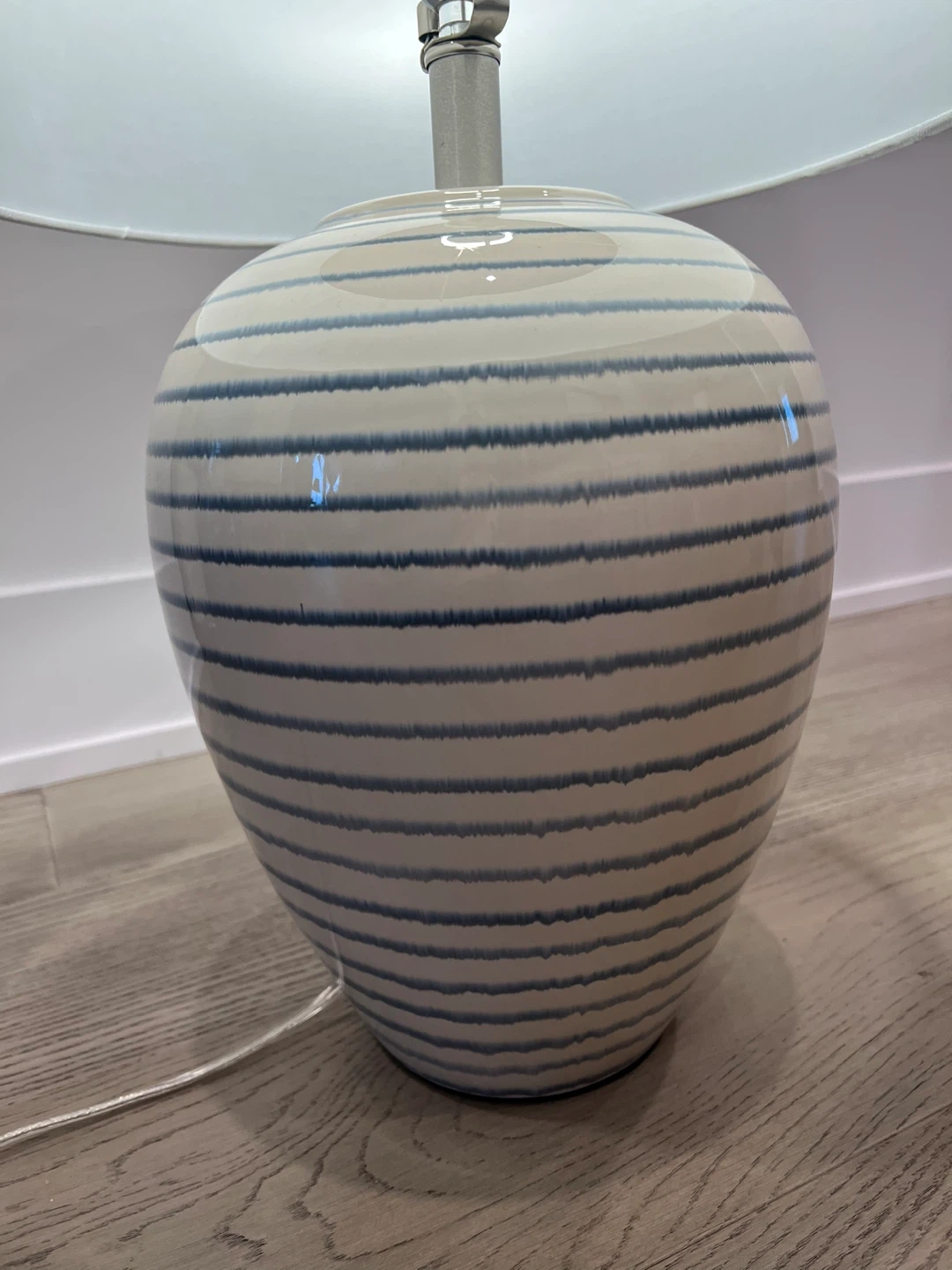 Modern Ceramic Table Lamp – Blue Stripe Design, Brand New