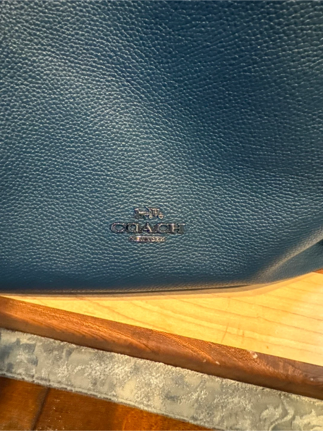 This is a beautiful Coach leather shoulder bag in a lovely shade of blue. It's in great condition and perfect for everyday use! The interior is spacious and has a zipper.