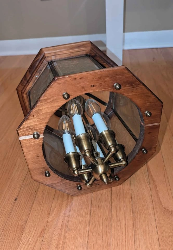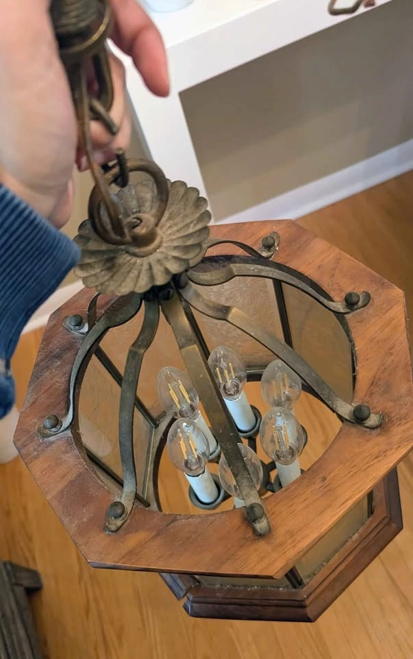 π― Vintage 6-Light Brass & Wood Hexagonal Hanging Lantern