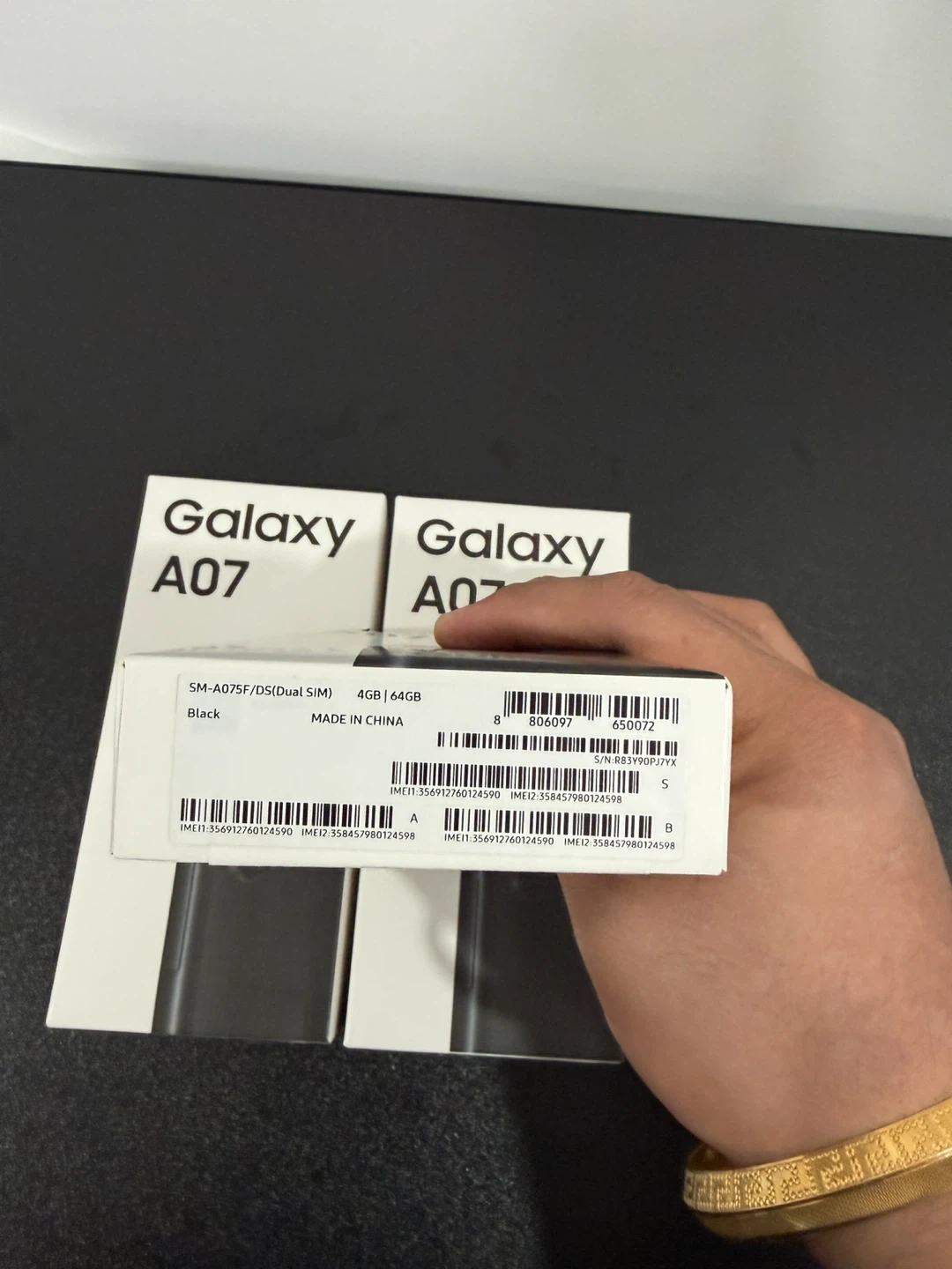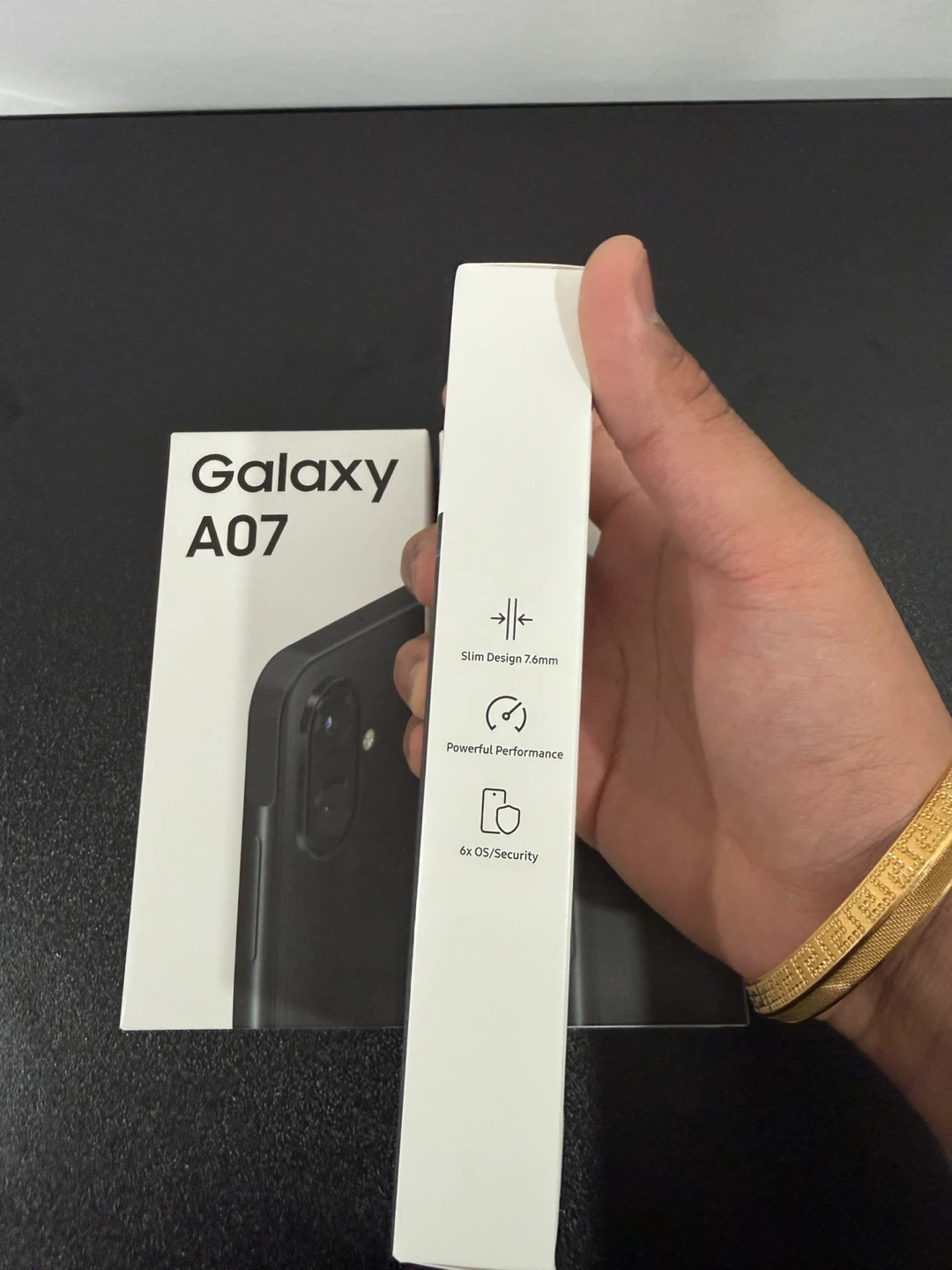 10Selling a brand new Samsung Galaxy A07 in black! It comes with 4GB of RAM and 64GB of storage. The box highlights a slim design of 7.6mm and powerful performance. It also features 6x OS/Security. Perfect for someone looking for a reliable smartphone!