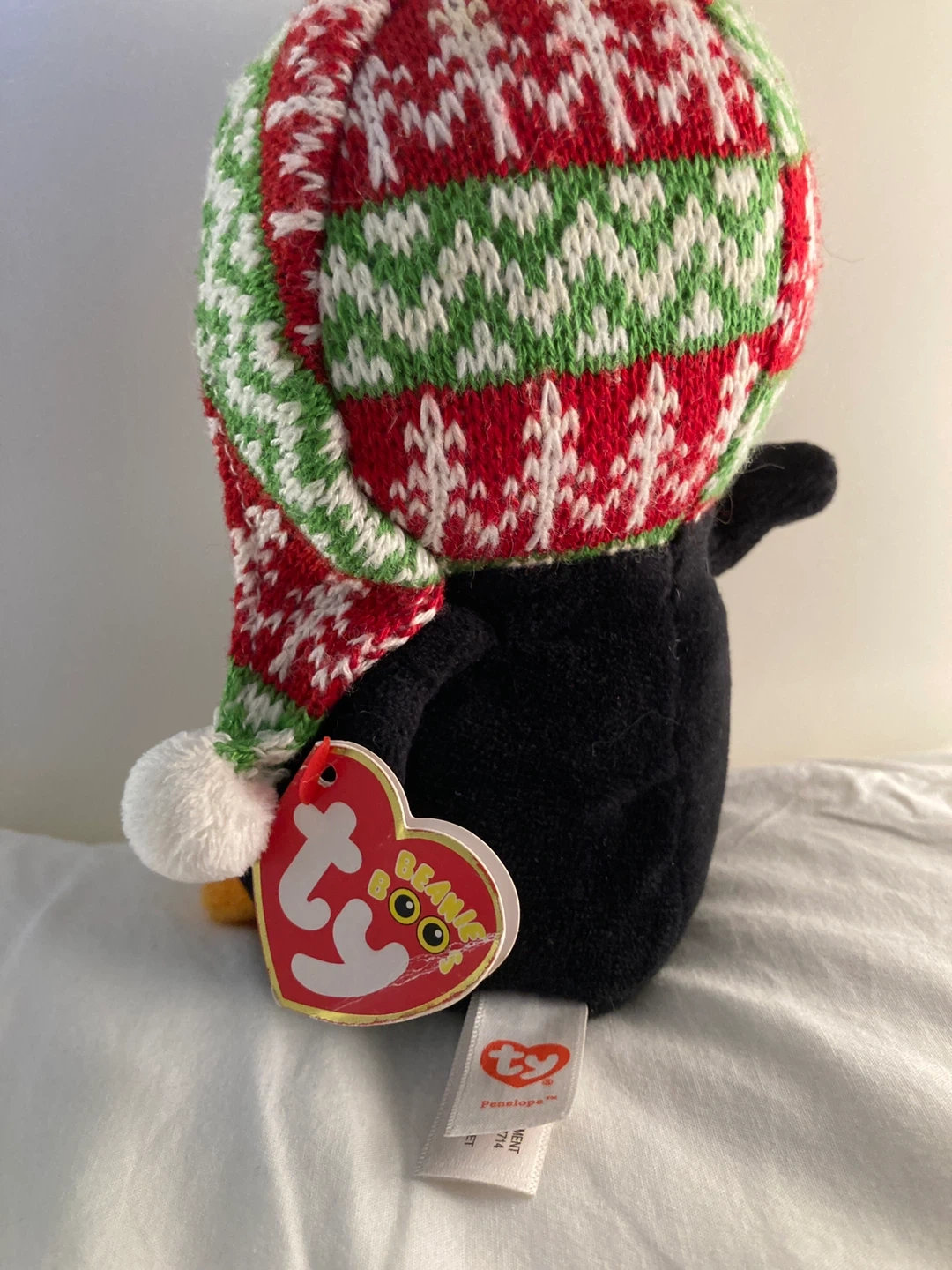 186Selling a cute Ty Beanie Boo named Penelope! She's a penguin with big blue glittery eyes and a festive winter hat. In great condition!