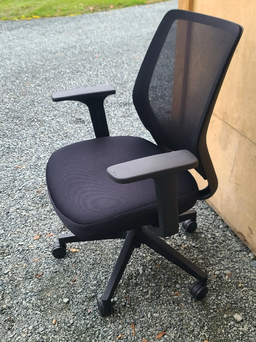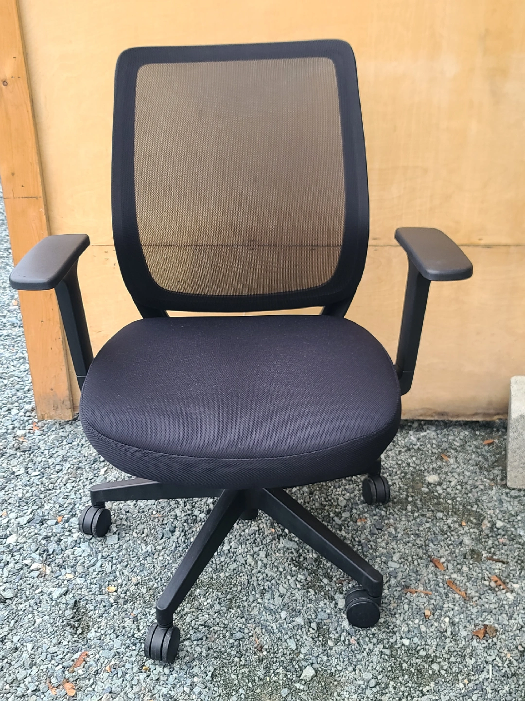 A comfortable black office chair! It's in great shape and ready for a new home office setup. The mesh back provides good support, and the seat is nicely padded. The chair also has adjustable armrests and smooth-rolling casters for easy movement. Delivery can be arranged. viewing and pickup by appointment.