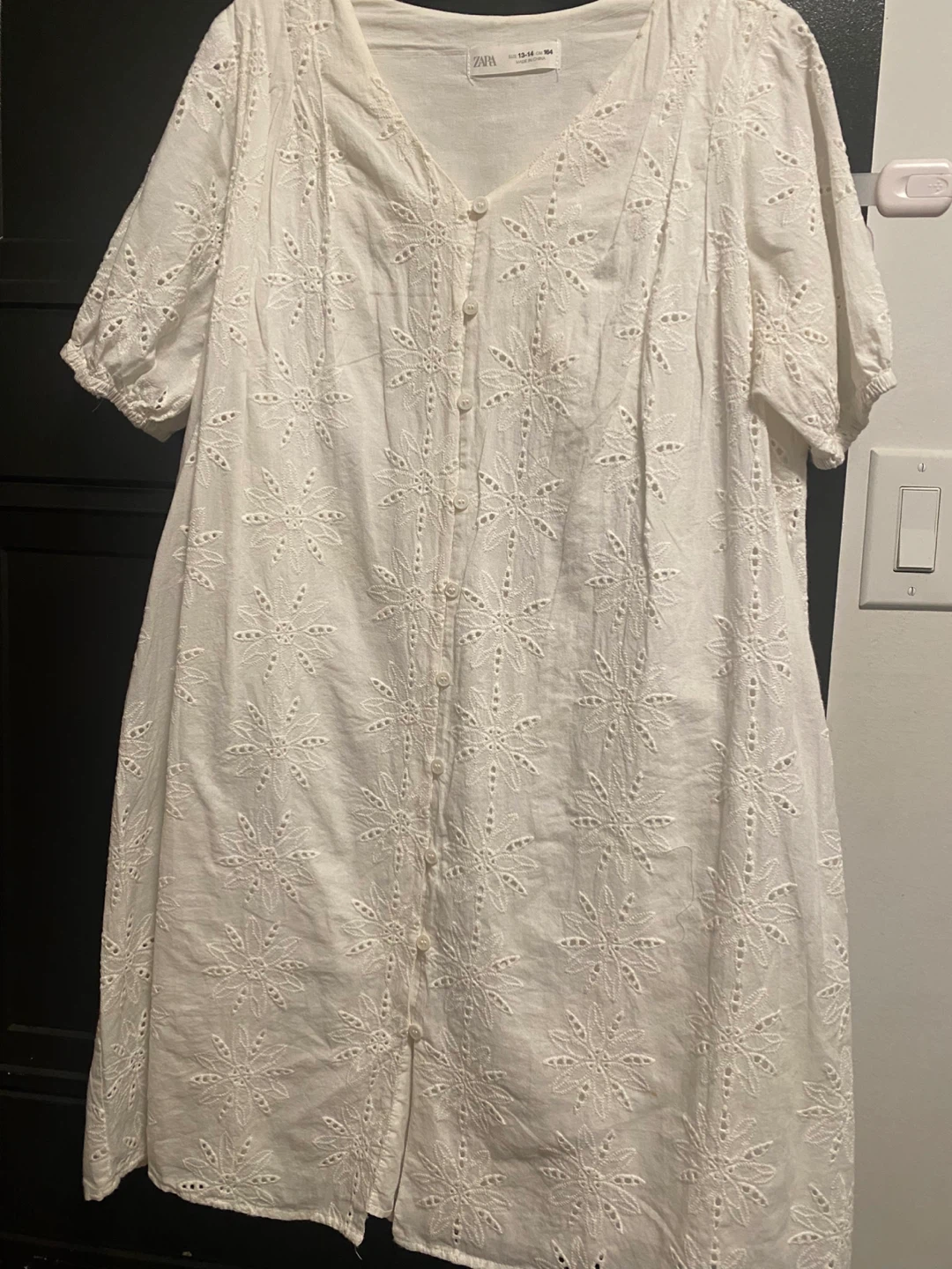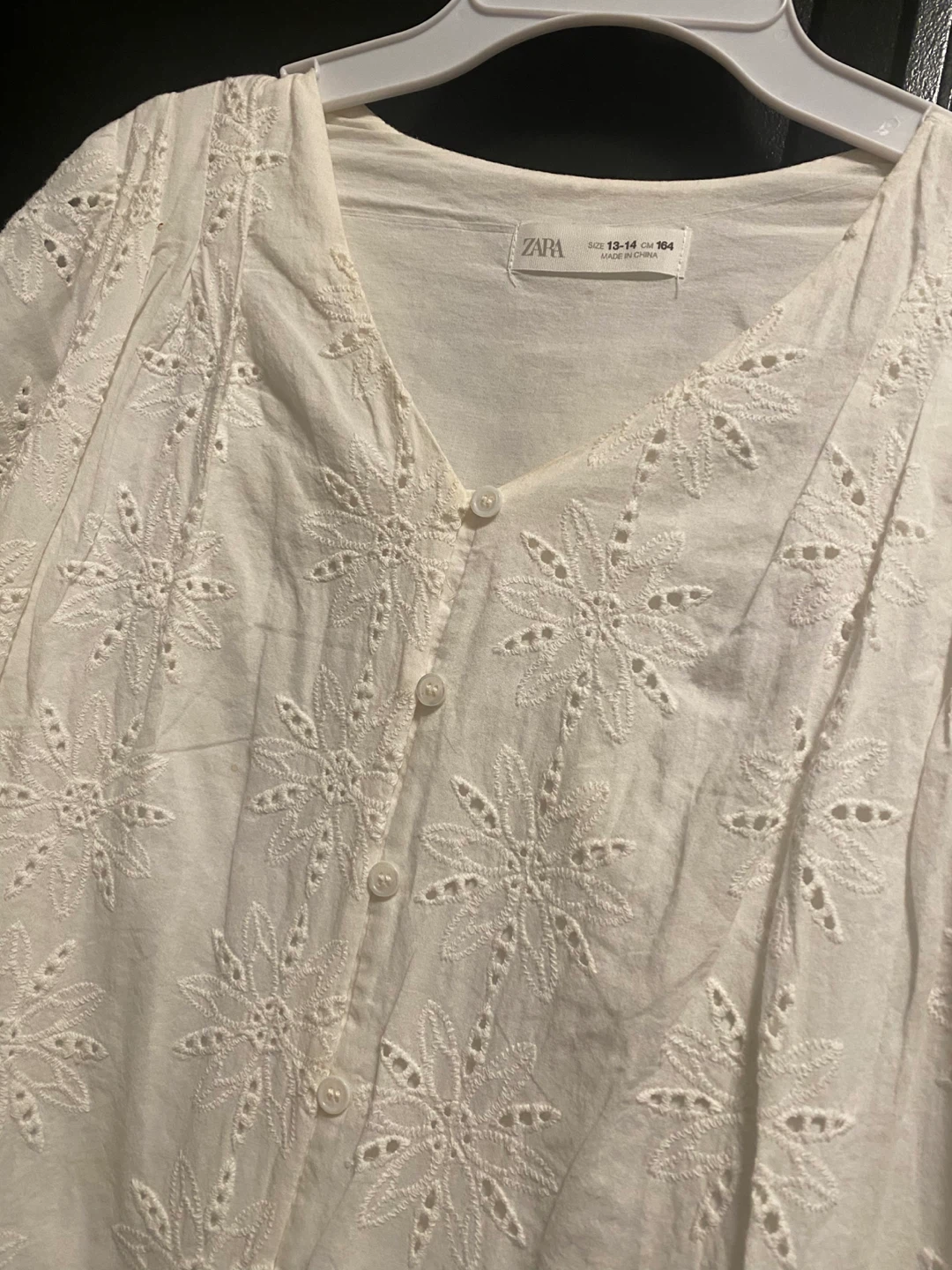 Selling a Zara white embroidered dress in excellent condition! The size is 13-14 (cm 164). It's a beautiful dress with a lovely floral embroidery pattern, perfect for a sunny day out