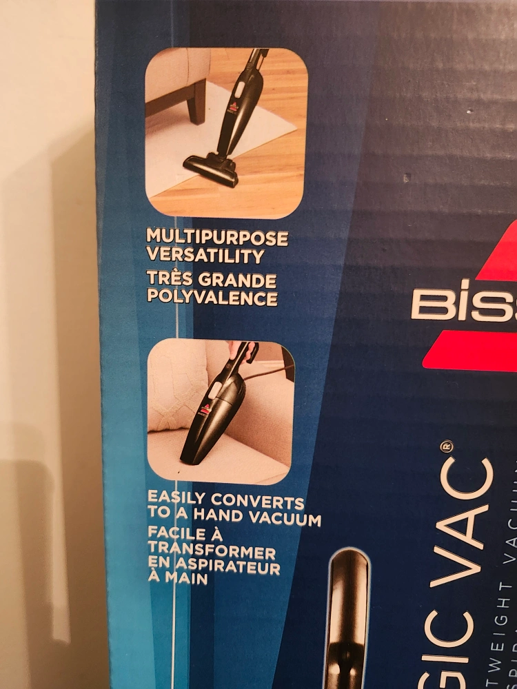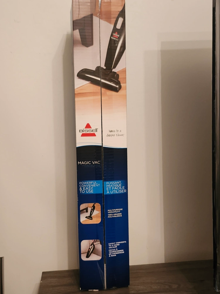 311I'm selling a brand new Bissell Magic Vac lightweight stick vacuum, still in its original box! This vacuum easily converts to a hand vacuum, making it super versatile for all your cleaning needs. It features an easy-empty dirt cup and easy-glide wheels. Perfect for quick clean-ups around the house original price is 54.96 + taxes