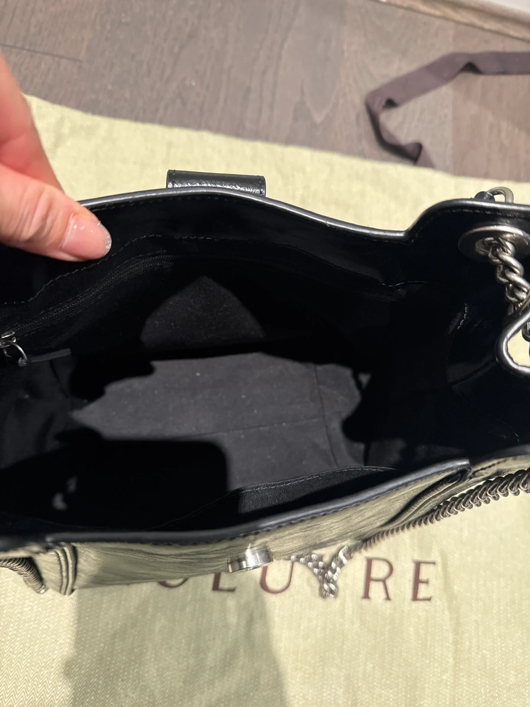 Selling a LOEUVRE Sac De Sortie Bucket Large Shoulder Bag in Noir (black)! It's a stylish bucket bag with a chain shoulder strap. Originally retails for $385!