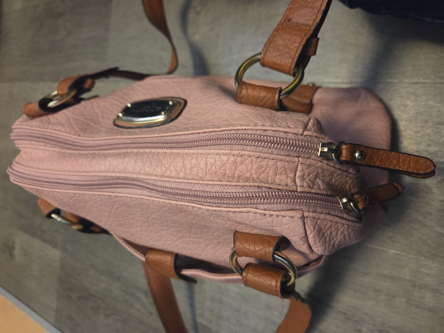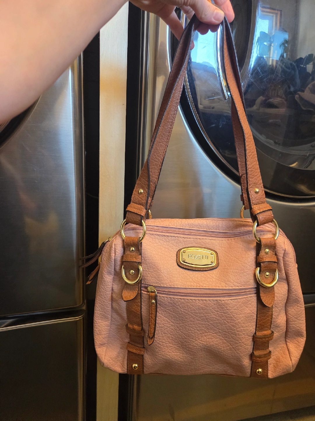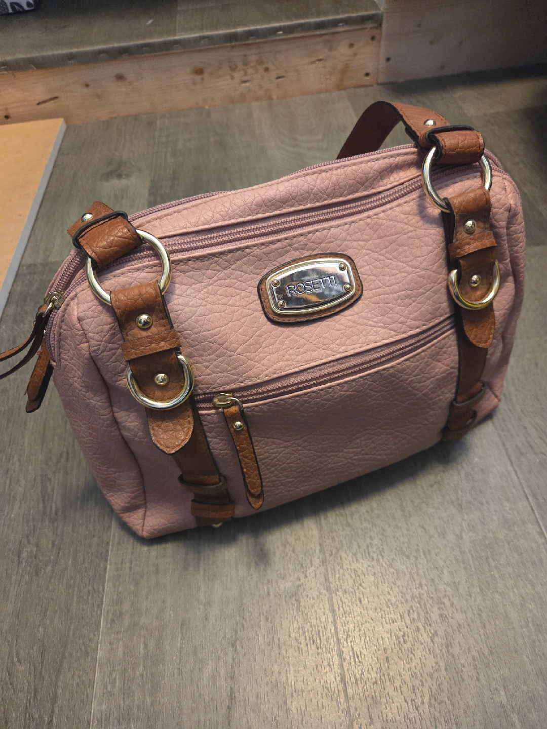 Selling a Rosetti purse in a lovely pink colour! It has brown accents and a few zippered pockets inside. It's in great condition and ready for a new home