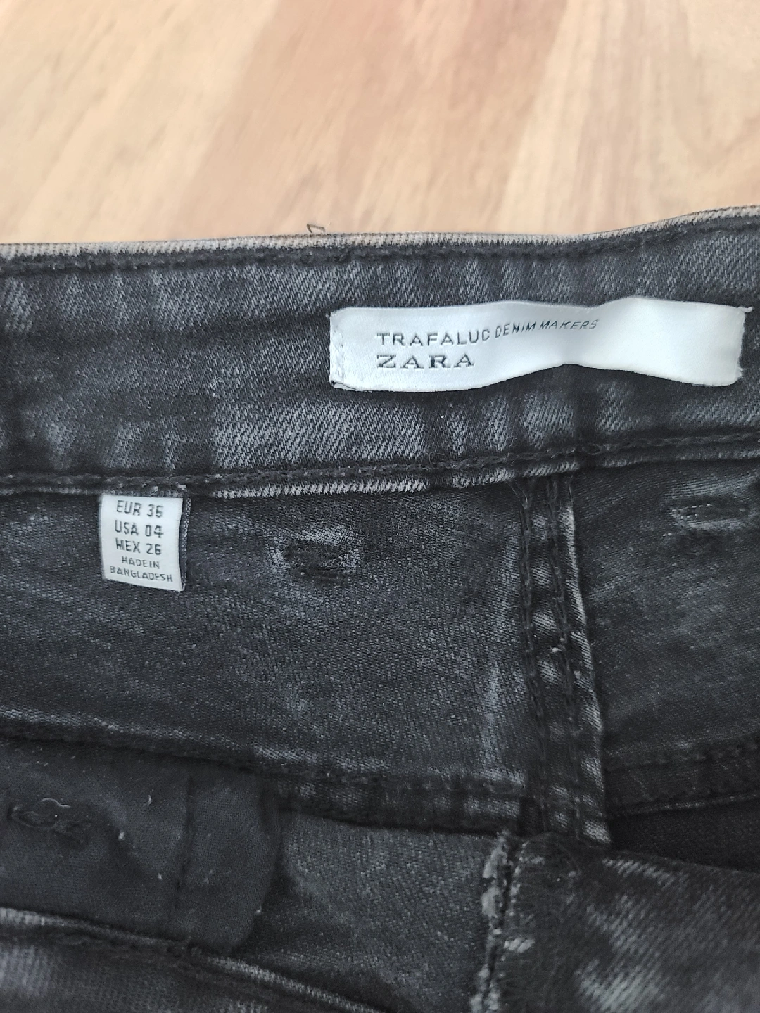 Selling a pair of Zara Trafaluc denim shorts in a dark wash. These are a size 4 (US). They're in great condition and ready for a new home!