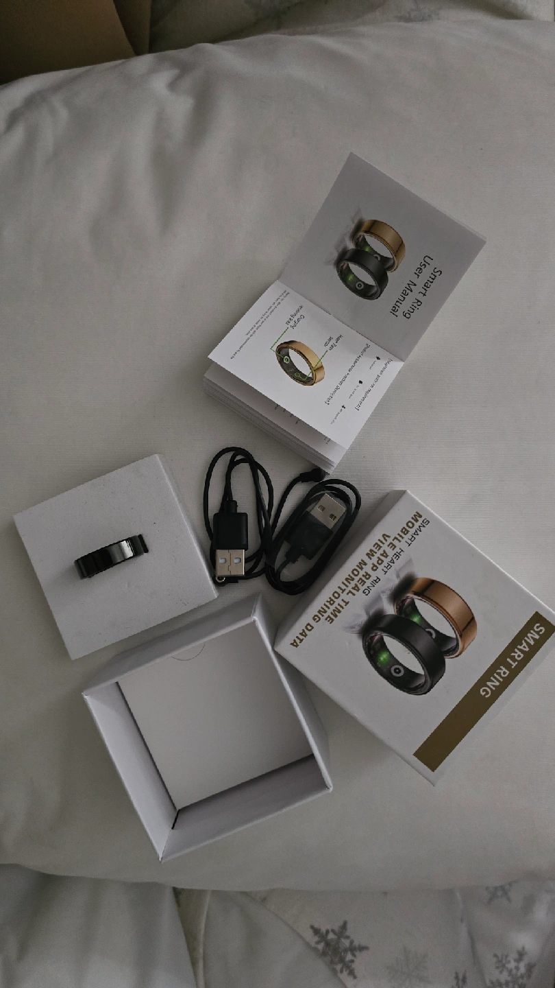 Selling a Smart Heart Ring that monitors real-time data via a mobile app. It comes with the original box, user manual, and 2 charging cable. This ring is perfect for anyone interested in tracking their health and fitness!