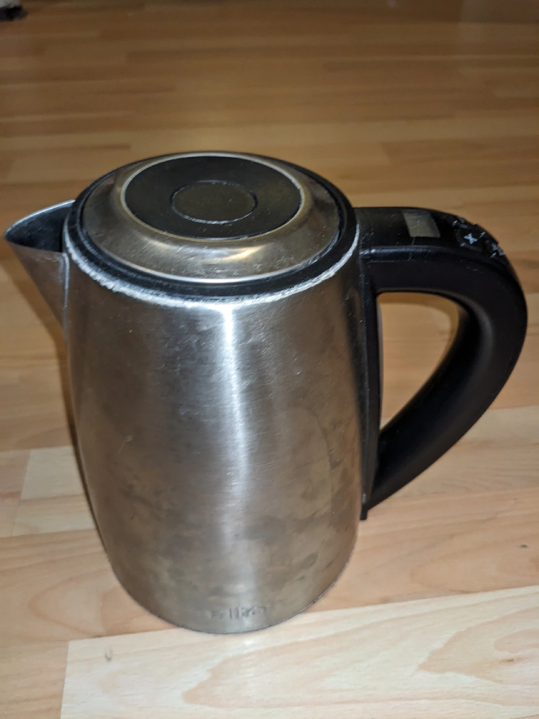 Selling a Sallton electric kettle which doesnt work. It has a stainless steel finish and a black handle.