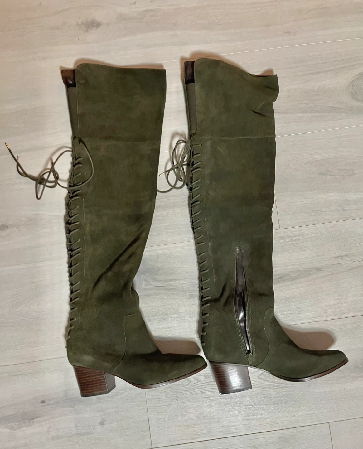 Stunning Olive Thigh-High Suede Boots – NEW!