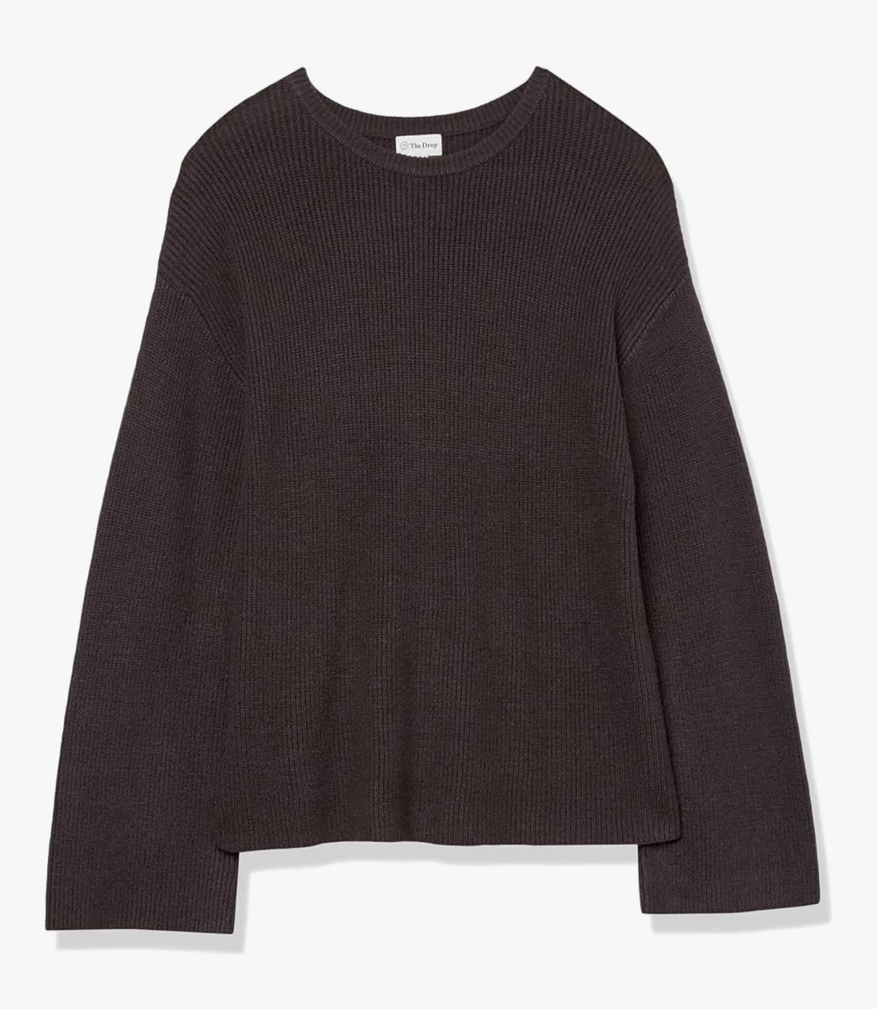 The Drop Alice Crew-Neck Back-Slit Ribbed Pullover - L