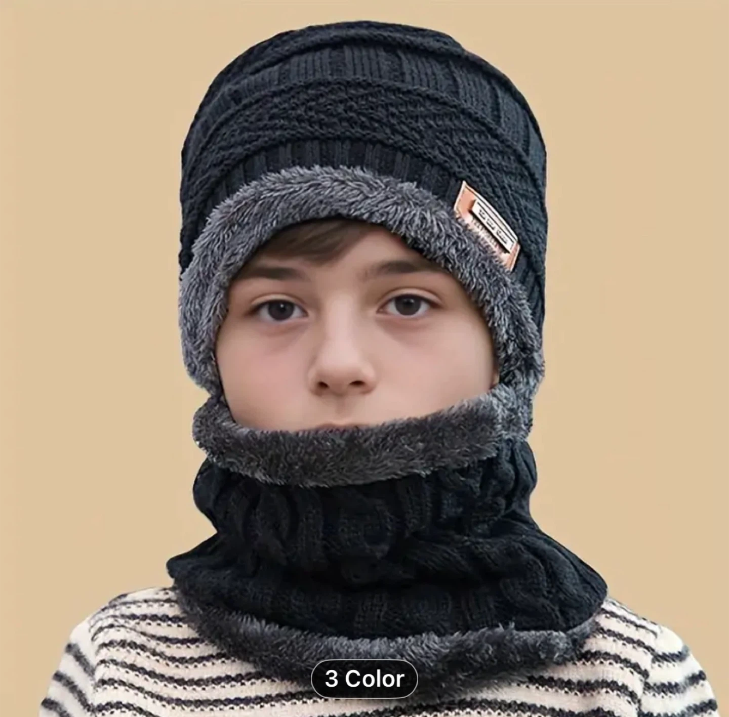 Voici un ensemble tuque et cache-cou de couleur noire. Parfait pour l'hiver et bien rester au chaud!