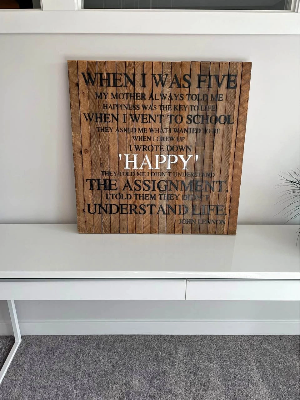 Buy & SellWall artWall art$30Wall hanging, light wood construction, 29” x 29”. John Lennon inscription.WHERE TO MEETCheck LocationView MapSELLERDermotWestmount50 reviews0 chats·0 favorites·4 views
