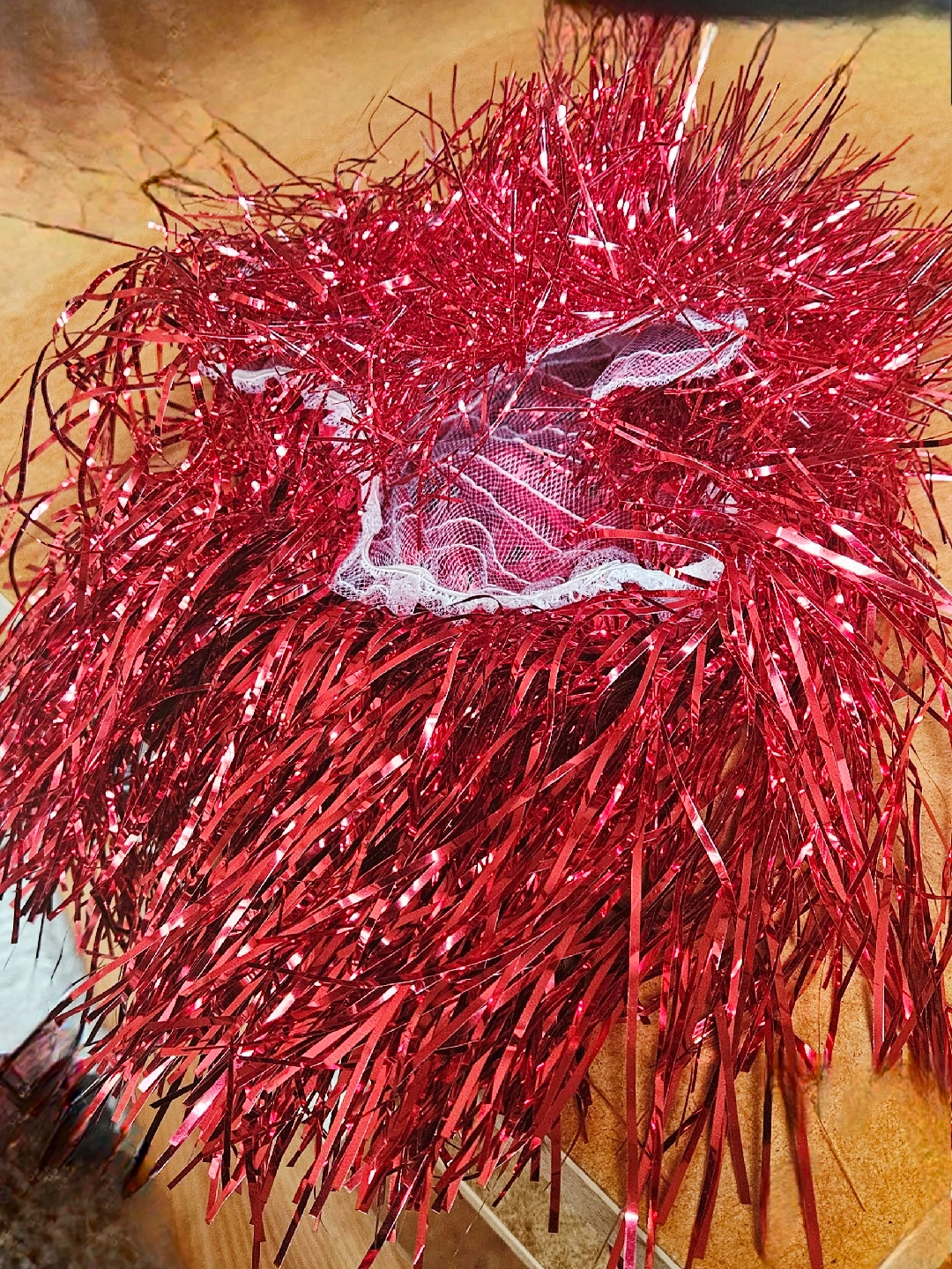 1000+Here's a fun red tinsel wig for Halloween! It's in great shape and ready to add some sparkle to your costume ✨️. From a smoke-free, pet-free home. Bundle discounts are available—feel free to browse my other listings. Thanks for looking! 😊🙏