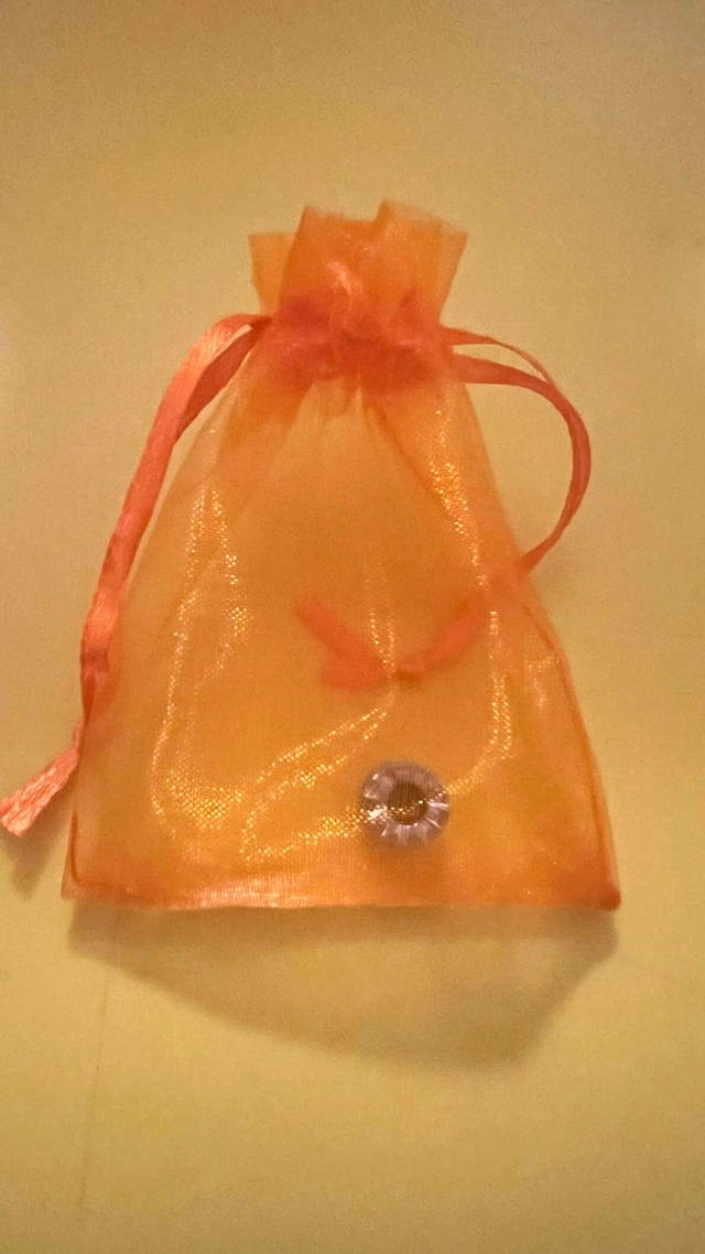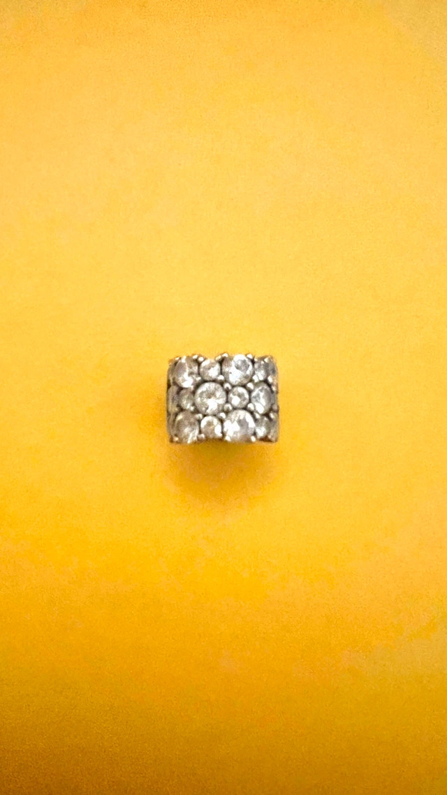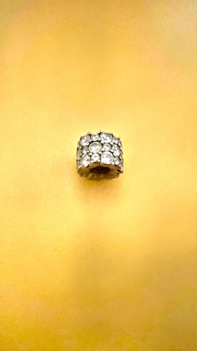 A cute PANDORA silver-tone bead with rhinestone accents, perfect for adding a touch of sparkle to any jewelry project! Comes in a little orange drawstring bag. 5 mm inner / hole diameter for passing through bracelet. For Sale By: Owner