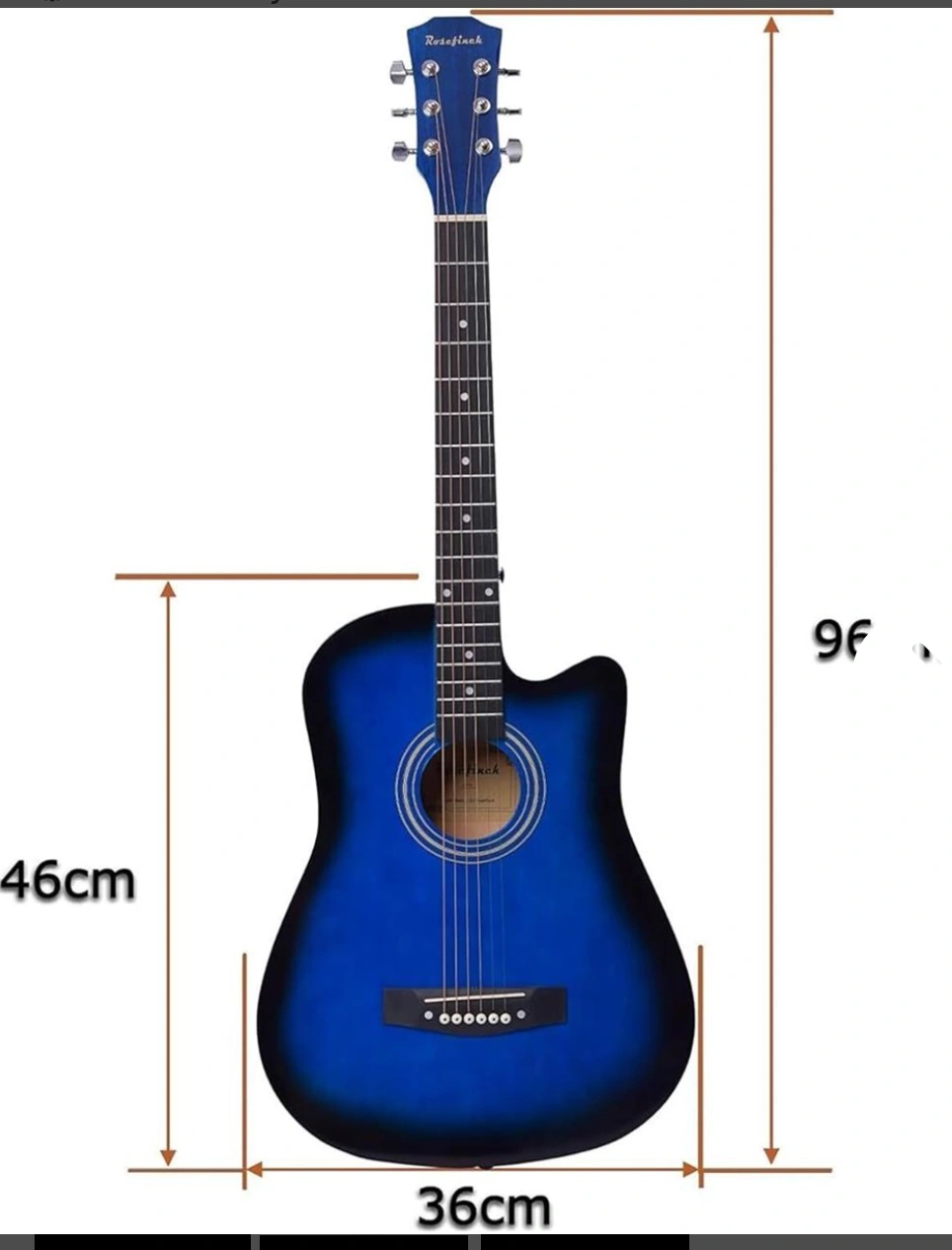Rosefinch 38 inch Left Handed Acoustic Guitar Kit for Beginner 3/4 Size Cutaway Lefty Acustica Guitarra Bundle Set (38" Blue)