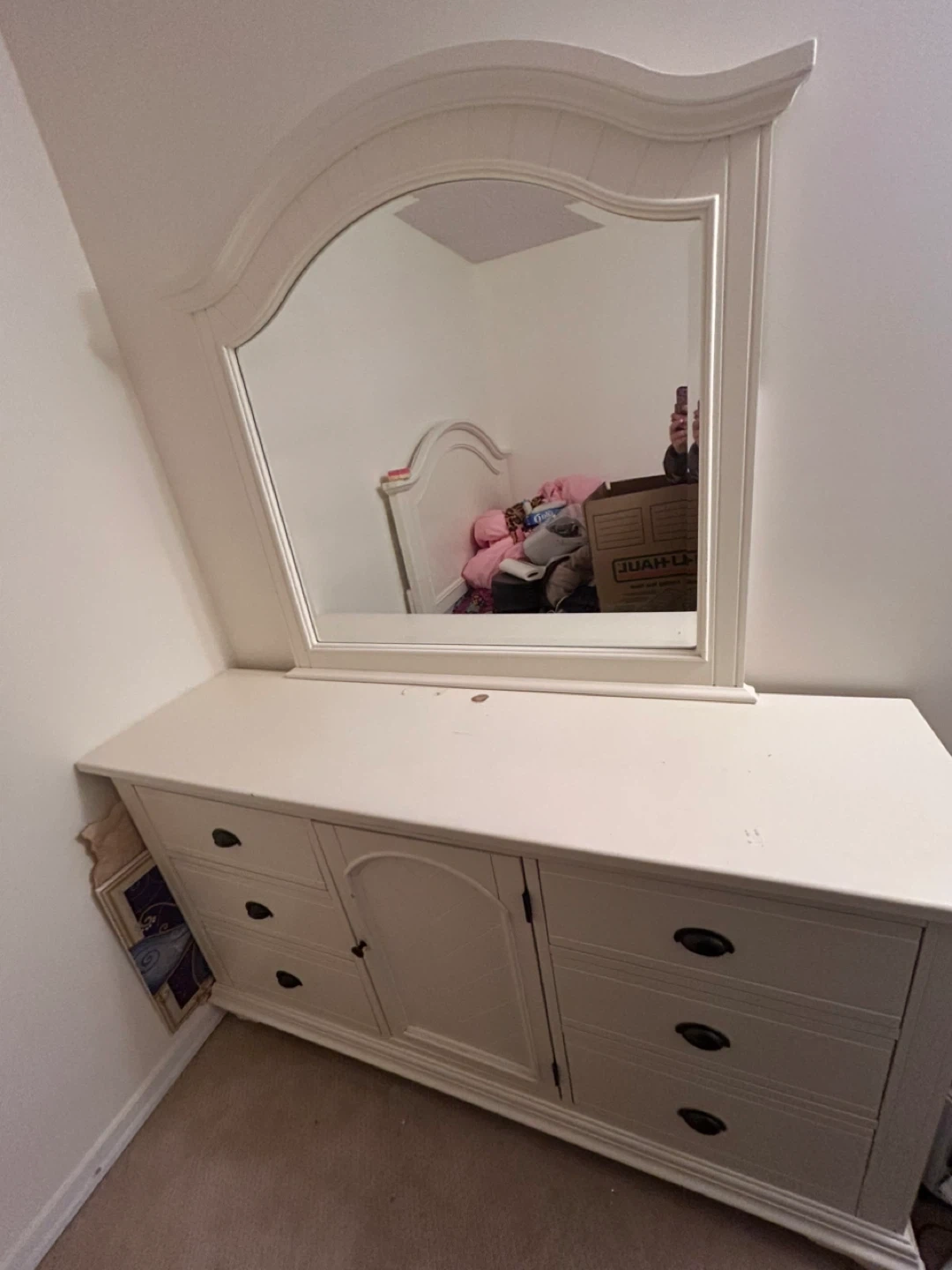 Buy & SellWhite Dresser & Nightstand SetWhite Dresser & Nightstand Set$210Selling a dresser with a mirror and a nightstand. They are both white and have a classic design. Perfect for a bedroom set!ConditionGoodWHERE TO MEET1016 55st nwView MapSELLERRylanSakaw50 reviews4 chats·3 favorites·87 viewsSEND CHAT TO SELLERHi Rylan! I’m interested in your listing.Hi Rylan! I’m interested in your listing.Get the Karrot app to chatSign In to chat