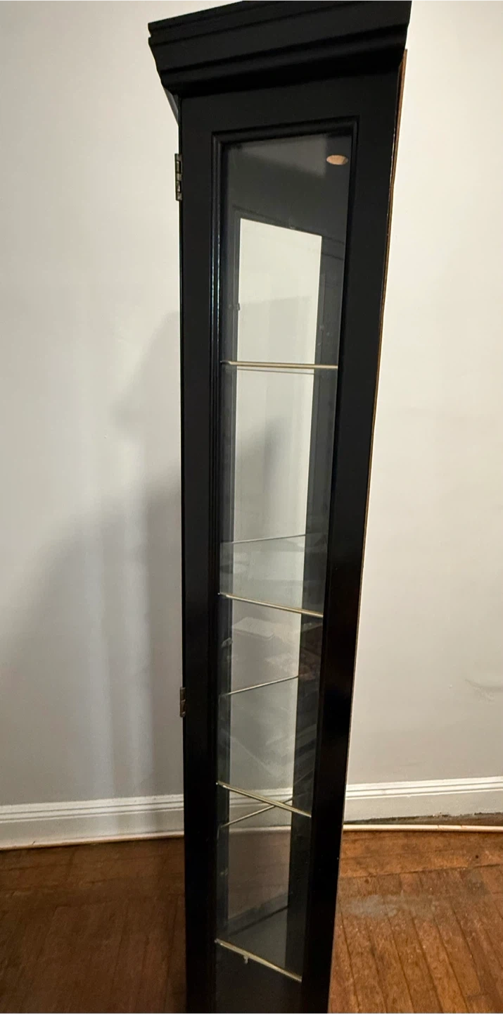 Selling 3 black curio cabinets. It's in good condition and ready to display your favorite items. Perfect for adding a touch of elegance to any room!