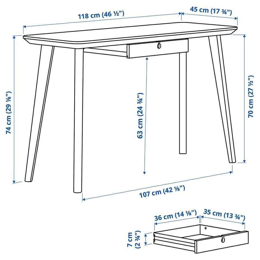 10Each table has its own unique character due to the distinctive grain pattern. The ash veneer table surface and solid birch legs add a warm, natural feeling to your room. Ash is a naturally durable material. The surface has been made even more hard-wearing by a protective coat of lacquer, which also helps it keep its natural wood feel. Easy to assemble as each leg has only one screw. Drawer stops prevent the drawers from being pulled out too far.