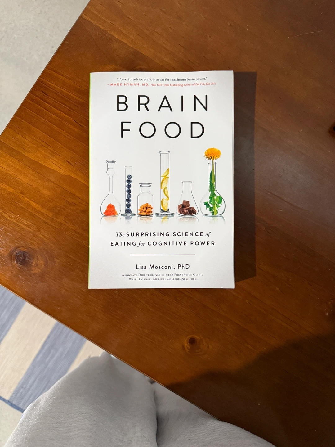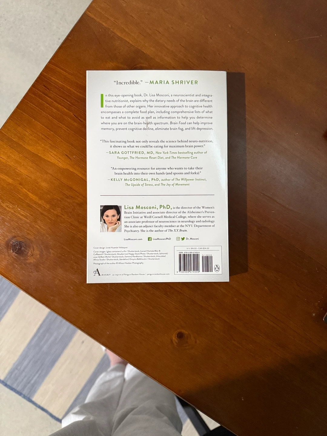 Selling the book Brain Food: The Surprising Science of Eating for Cognitive Power, written by Lisa Mosconi, PhD. It explores the connection between nutrition and brain health. A great read for anyone interested in cognitive science and healthy eating!