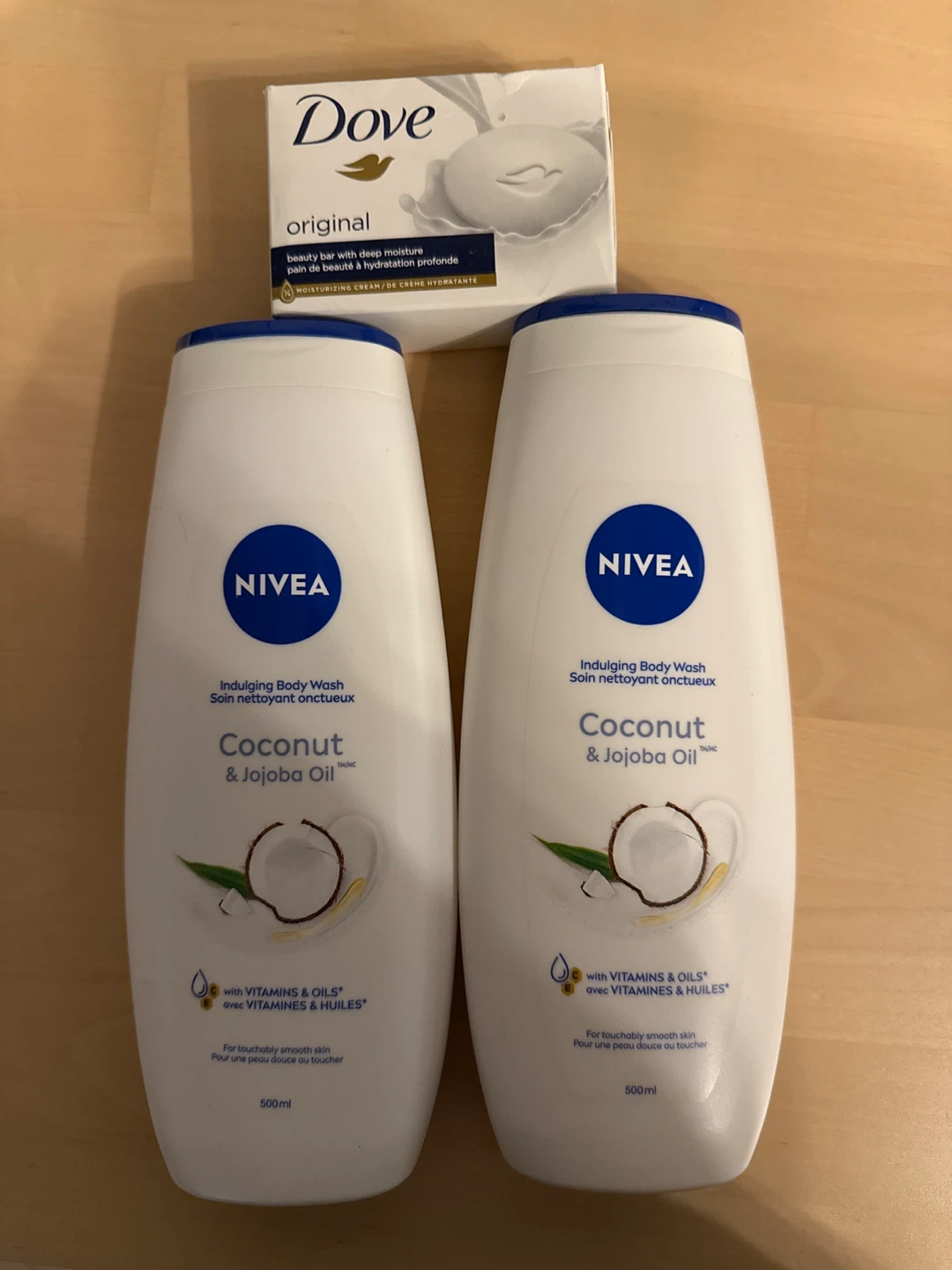 Nivea Coconut & Jojoba Oil Body Wash (2) + Dove Soap