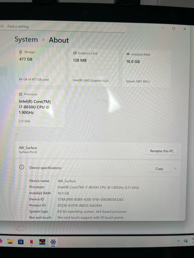 91I'm selling a used Microsoft Surface Pro. This versatile device is perfect for both work and play, offering tablet-like portability with laptop functionality. It's in fair condition, ready for a new owner to enjoy. Additional Specs: * Brand: Microsoft * Type: Surface Pro * Screen Size: Unknown If the ad is up, it is still available!