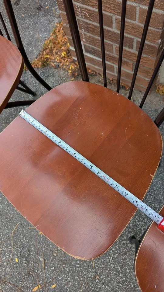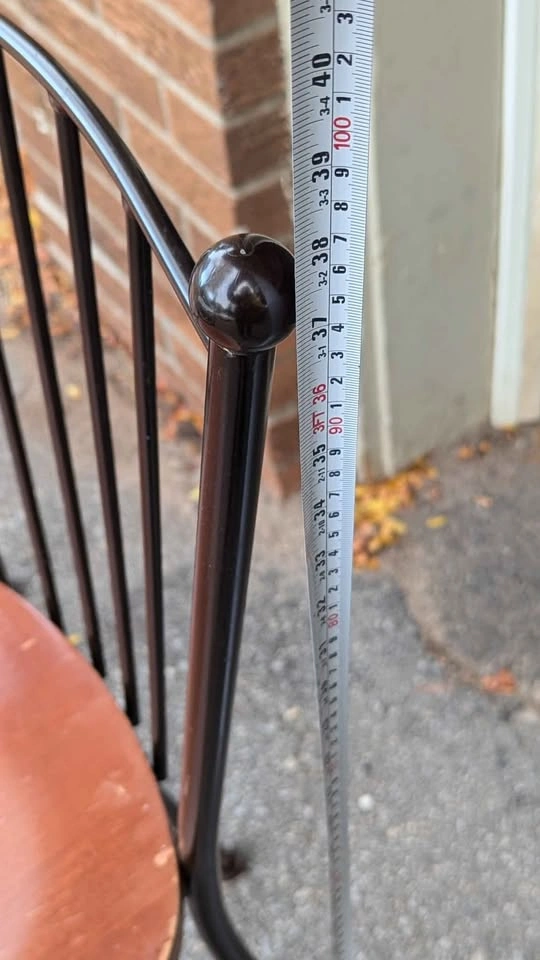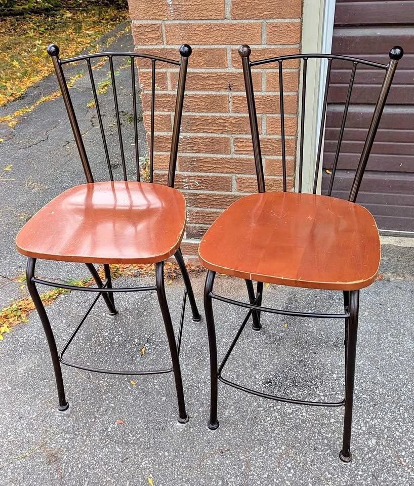 1702 for $25 3 for $35 All 4 for $40 Fastest pickup is priority! Sturdy metal frame with curved backs and solid wood seats. Height: 39” back / Seat height: 24” (counter height) Seat width: 15.5” Good condition overall with light surface wear on seats. Great for kitchen islands, bar seating, or dining areas.