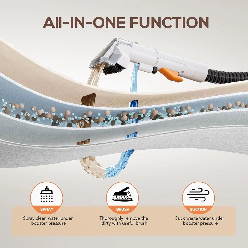 Versatile Cleaning: Perfect for carpets, sofas, car seats, mattresses, and stairs.