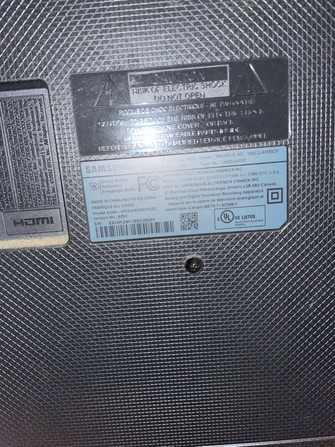 Selling a Samsung 32-inch TV, model number UN32J4000CF. It's in good working condition and ready for a new home