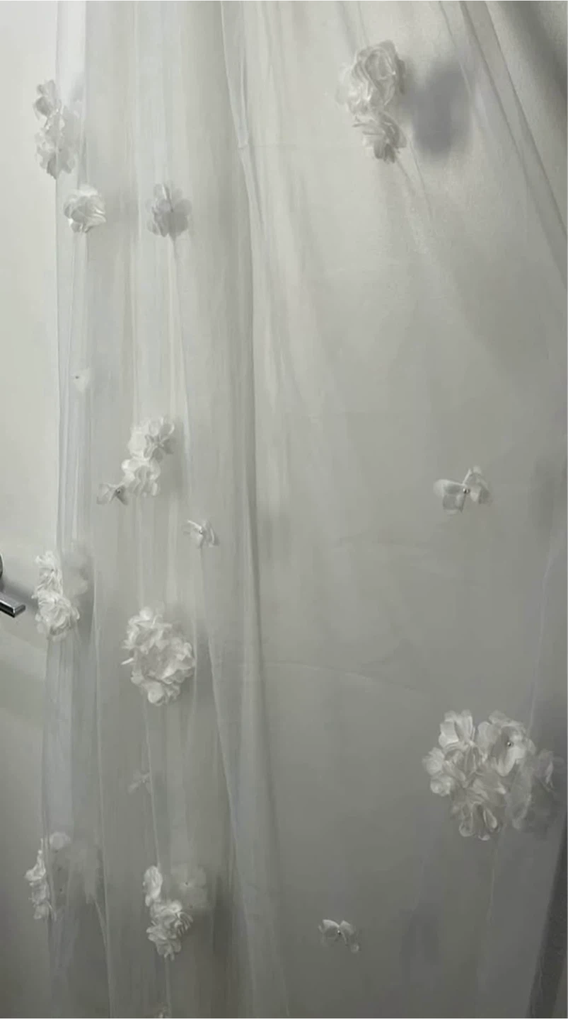 89Beautiful wedding veil featuring delicate floral appliqués. It's in great condition and ready to add a touch of elegance to your special day