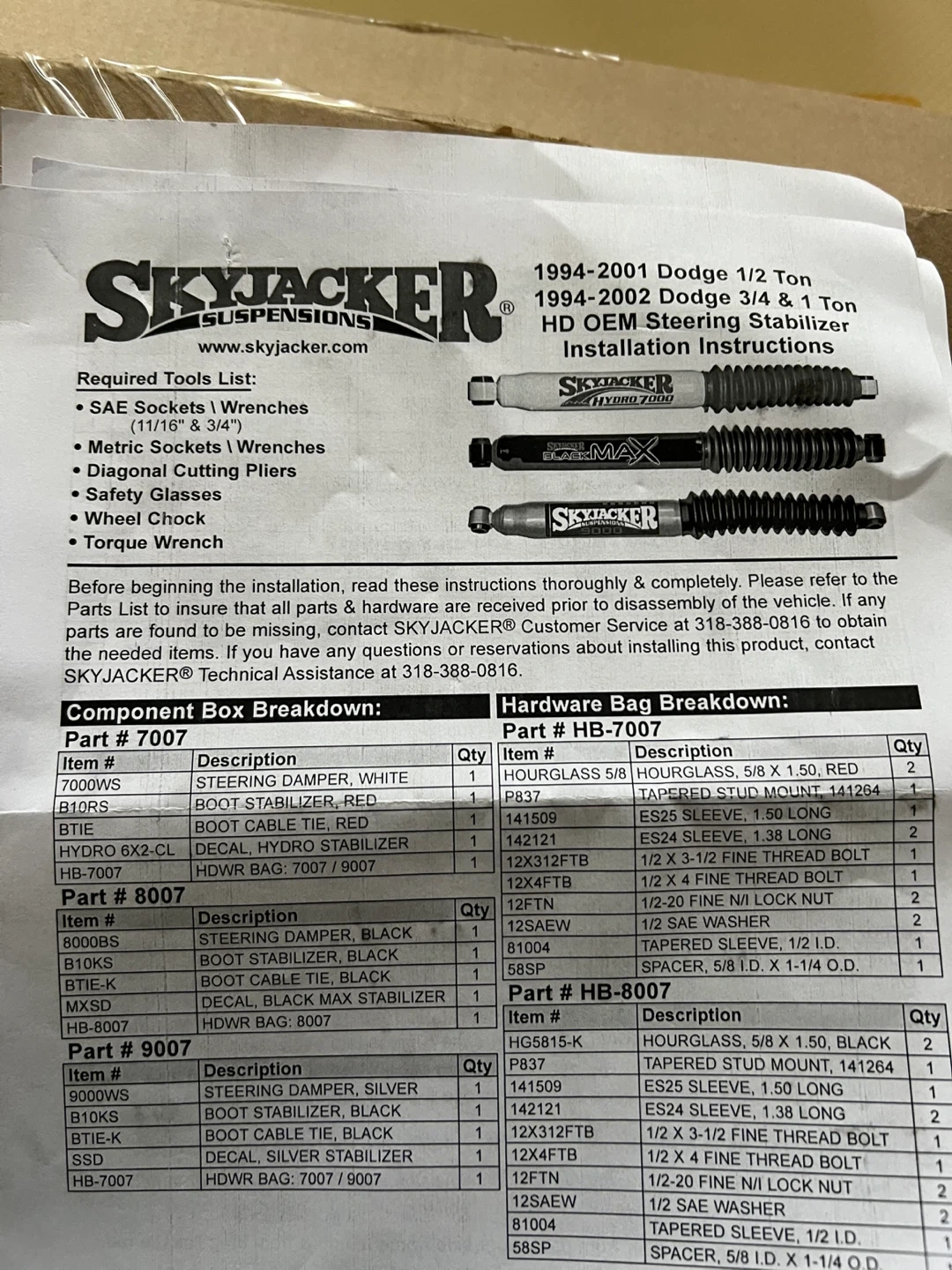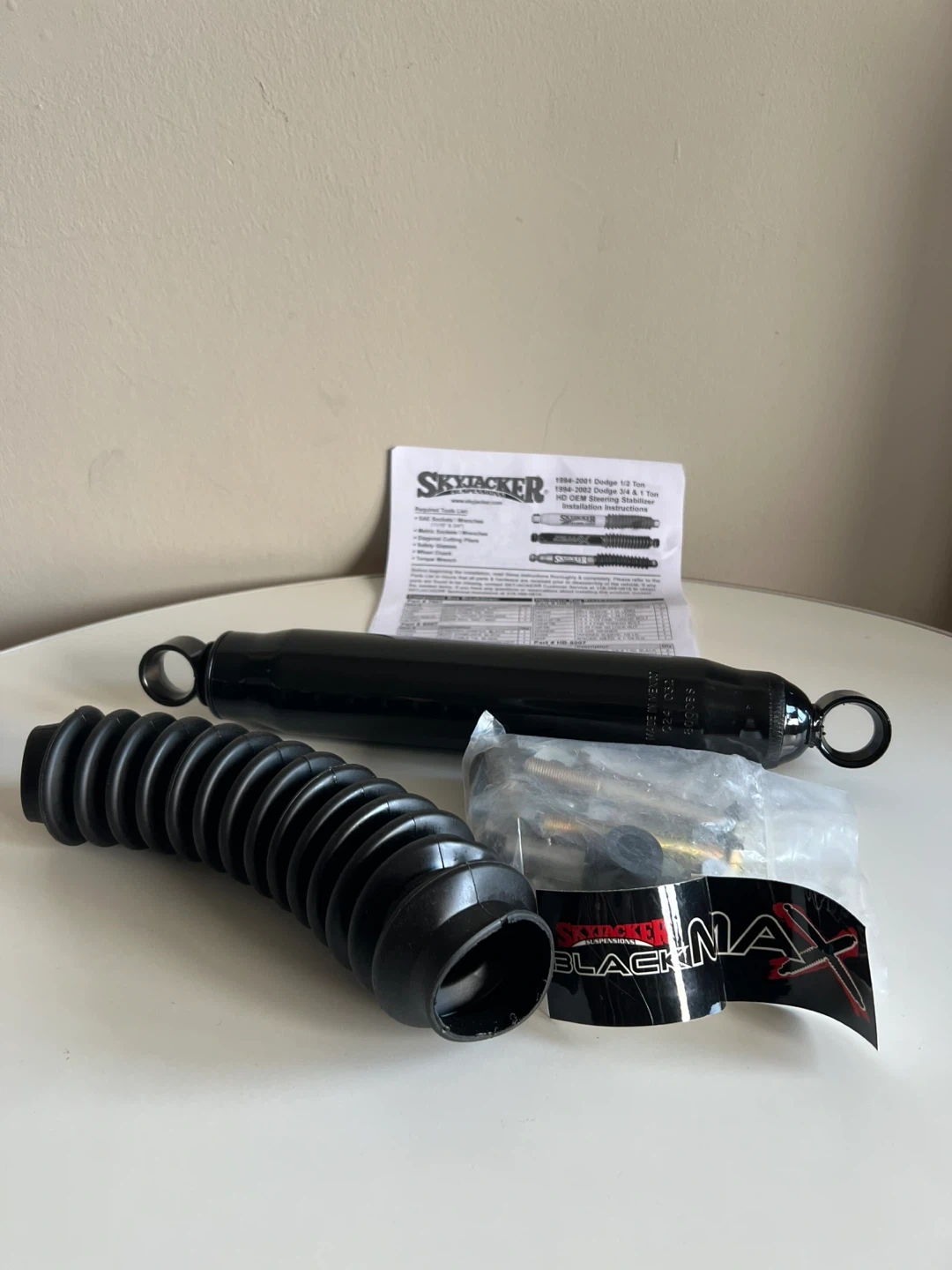 100Selling a Skyjacker steering stabilizer kit. Includes the components and hardware as shown in the pictures. Perfect for Dodge 1/2 Ton and 3/4 & 1 Ton HD OEM Steering Stabilizer installation.