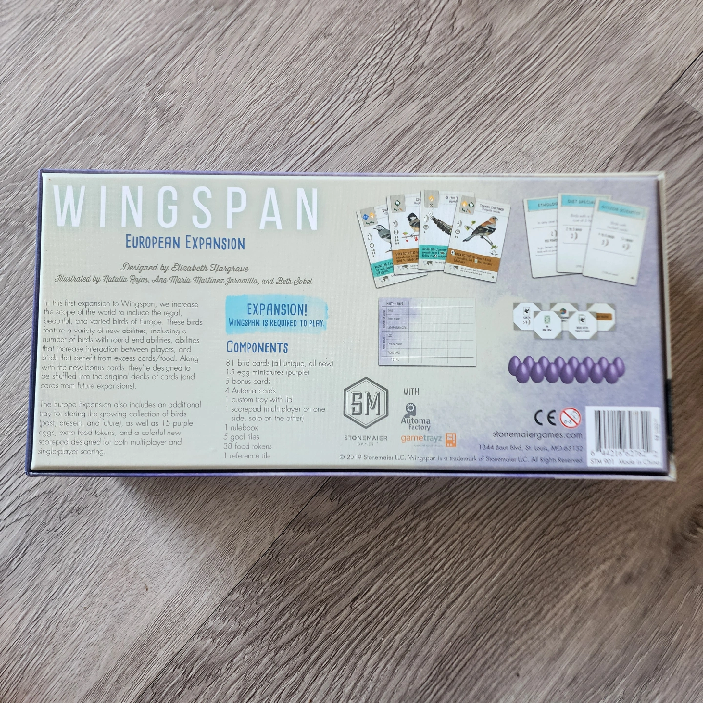 60Selling the Wingspan European Expansion board game! It increases the scope of the world to include the birds of Europe. The European Expansion also includes an additional tray for storing the growing collection of birds, new food tokens, and a colourful new scorepad designed for both multiplayer and Wingspan Automa solo play. Includes 81 bird cards, 15 eggs, 4 Automa cards, 1 custom tray with lid, 1 scorepad, 38 food tokens, and 1 reference tile