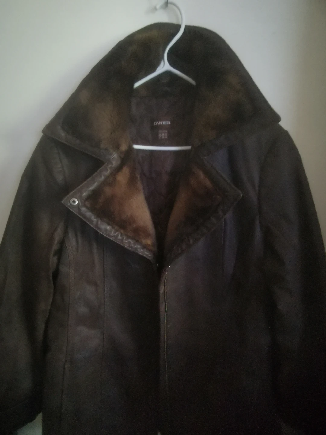 15Selling a gently used Danier leather coat. It features a stylish fur collar, perfect for keeping warm during the colder months. The coat is in good condition and ready for a new home!