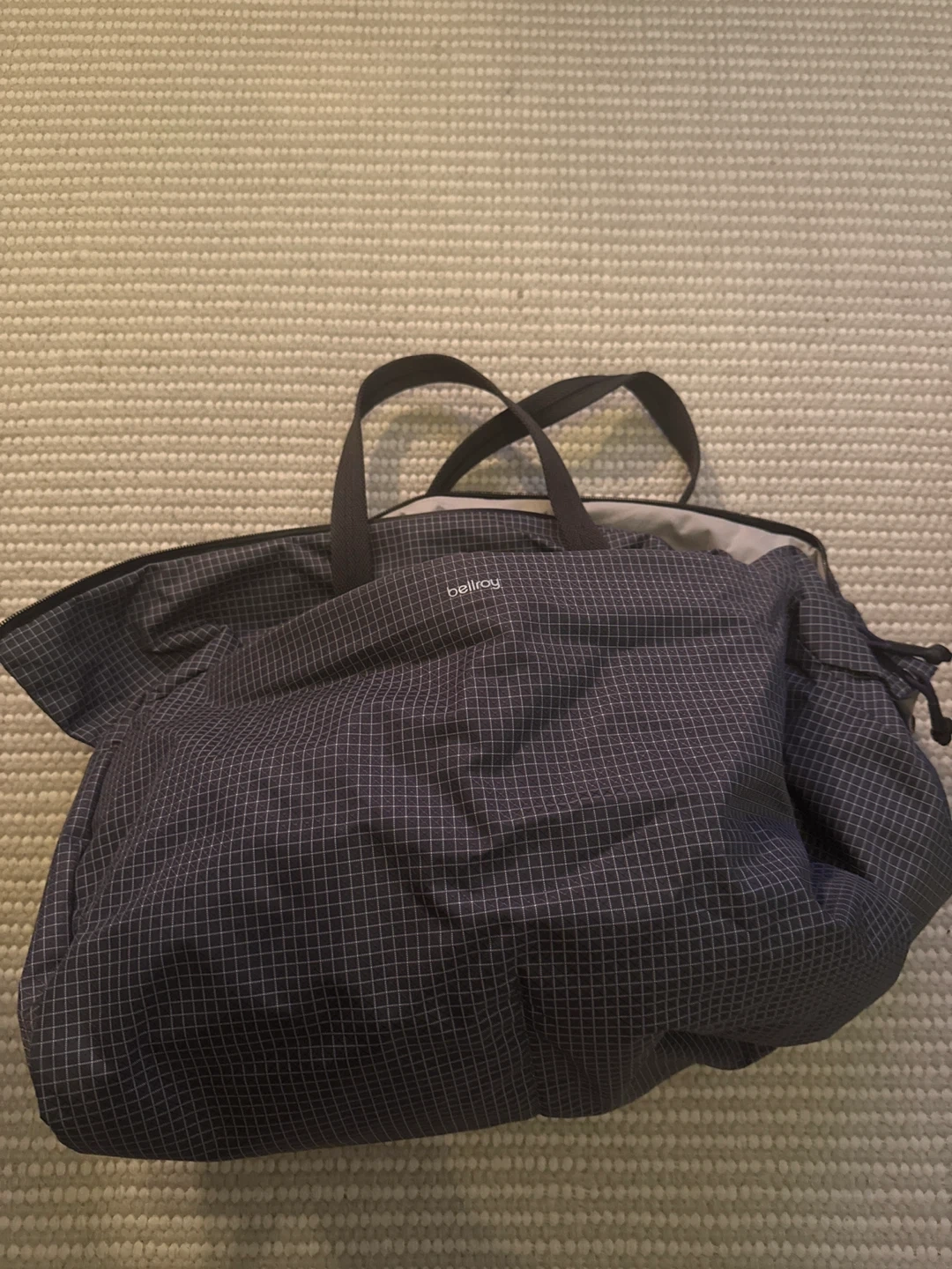 Looking to sell my Bellroy Market Tote Bag in the Charcoal Grid colour. It's in great condition and ready for a new home. Perfect for gym or travel