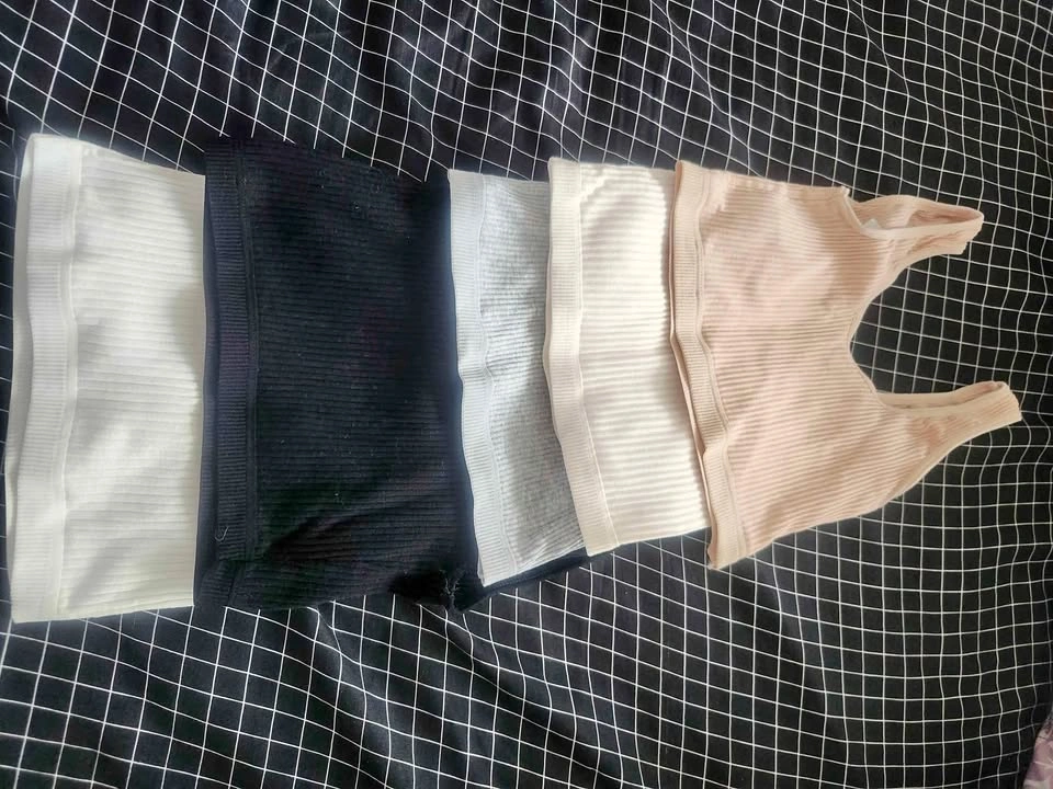 Get 5 comfy ribbed training bras/tank tops in soft neutral shades β Beige, Cream, Grey, Black & White! Perfect for everyday wear, layering, or lounging.