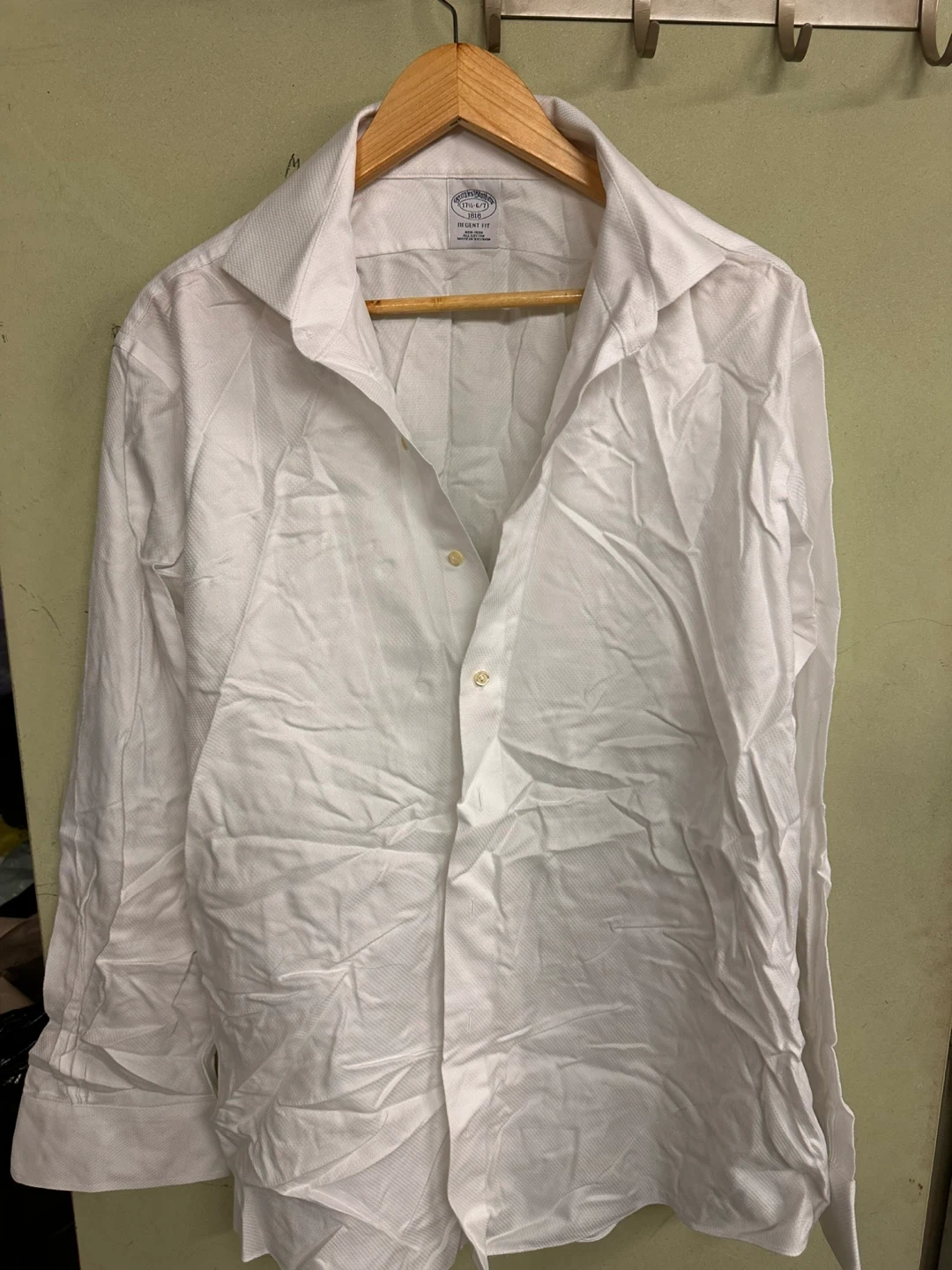 Selling a Brooks Brothers dress shirt in size 17 1/2-6/7. It's a Regent Fit, made from all cotton, and is non-iron. It's in great condition and ready for a new home
