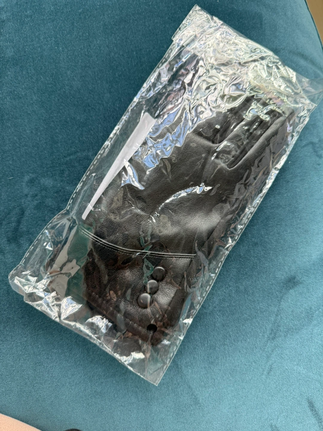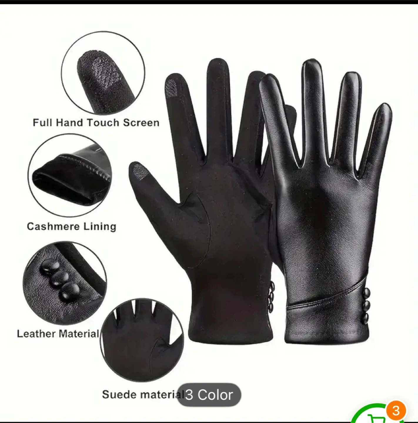 Selling a pair of black leather gloves designed for touch screen use! They feature capacitive touch screen technology on the thumb and index finger, making it easy to use your electronic devices while keeping your hands warm. They come in the original packaging