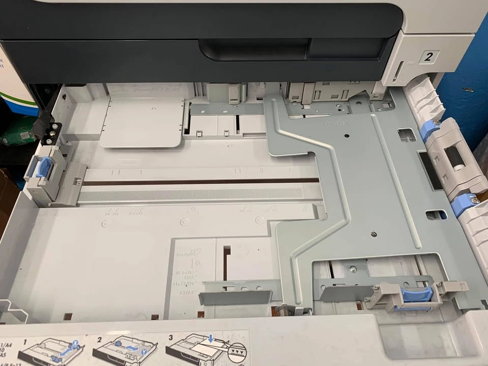 This printer has 2 paper trays capable of printing on 11x17 paper. It only printed 21,654 pages to date. It retails as new for $2,400.00