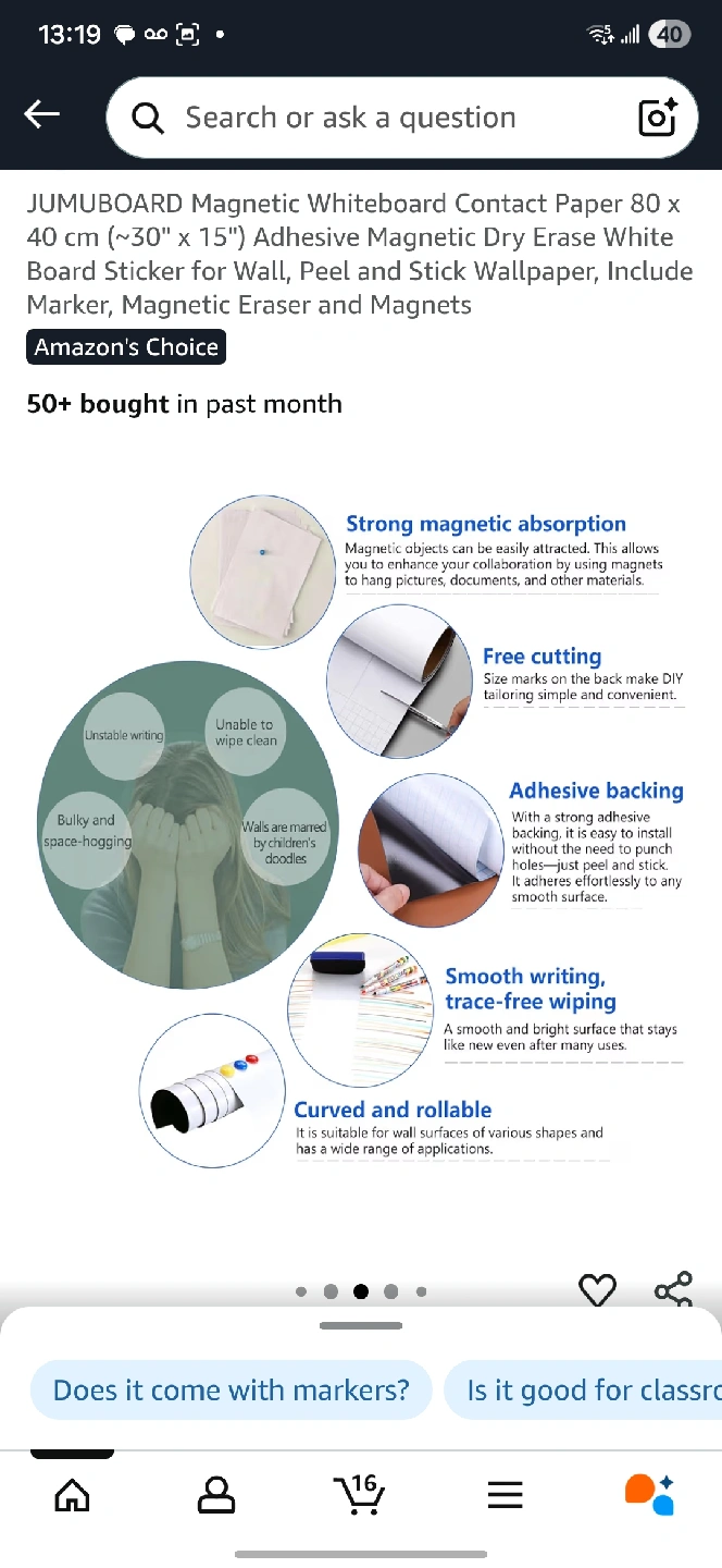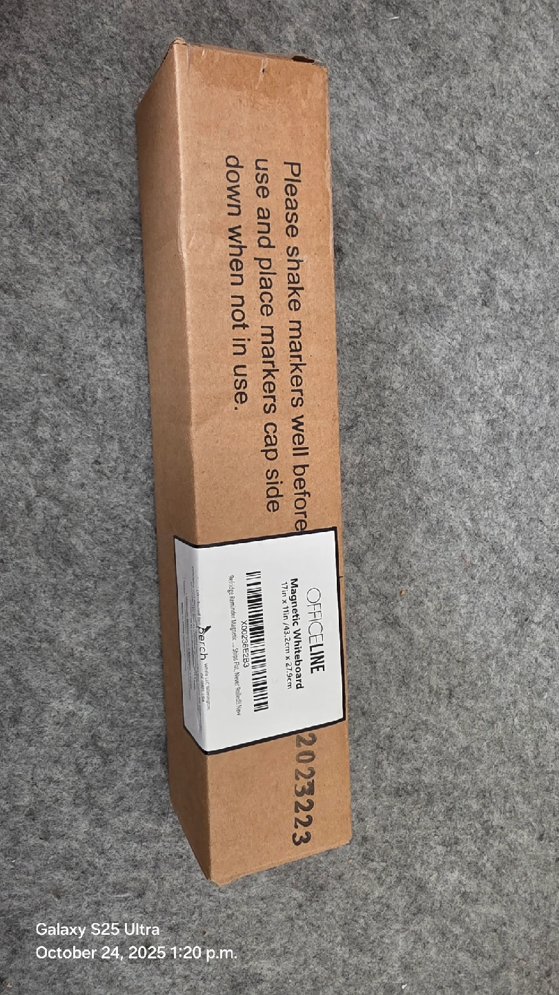 I'm selling a brand new OFFICELINE magnetic whiteboard! It's still in its original packaging. The size is 17 inches by 11 inches (43.2cm x 27.9cm). It ships flat and is never rolled, so it's ready to use right away! Comes with markers