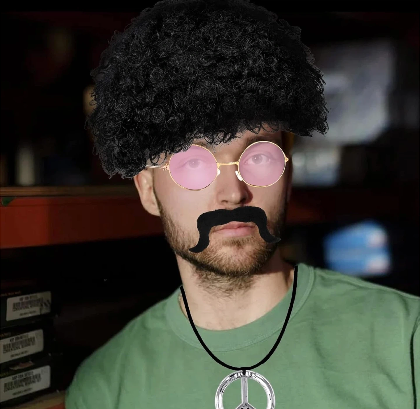 70s Hippie Costume Set - Jacket, Pants, Wig, Glasses, Necklace