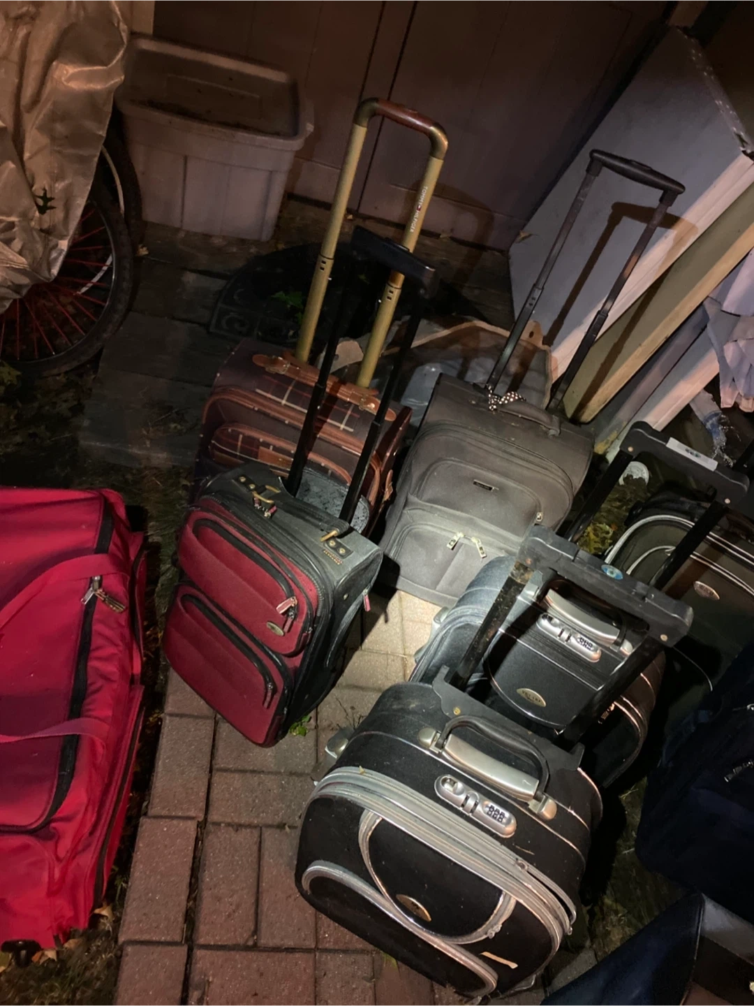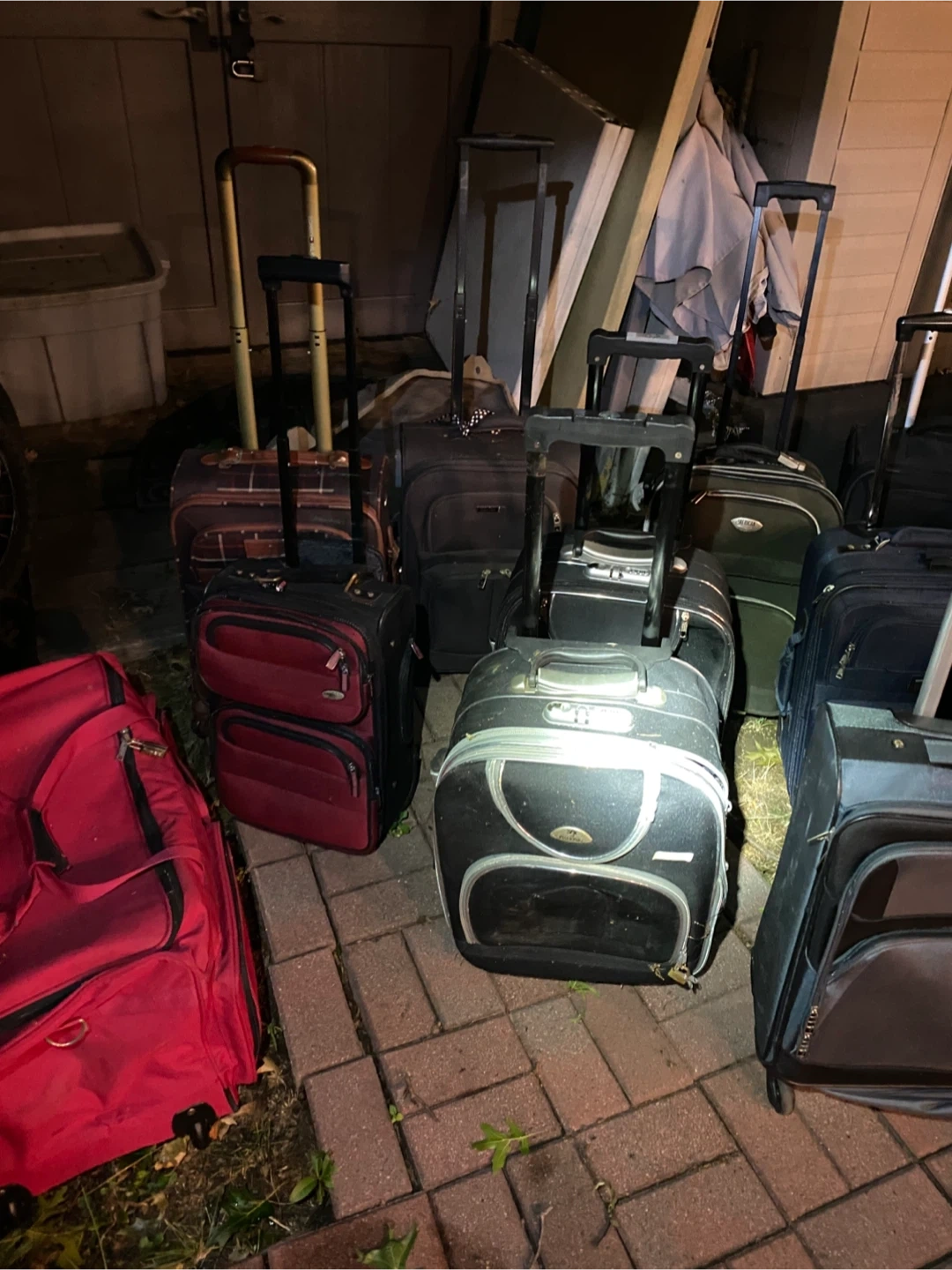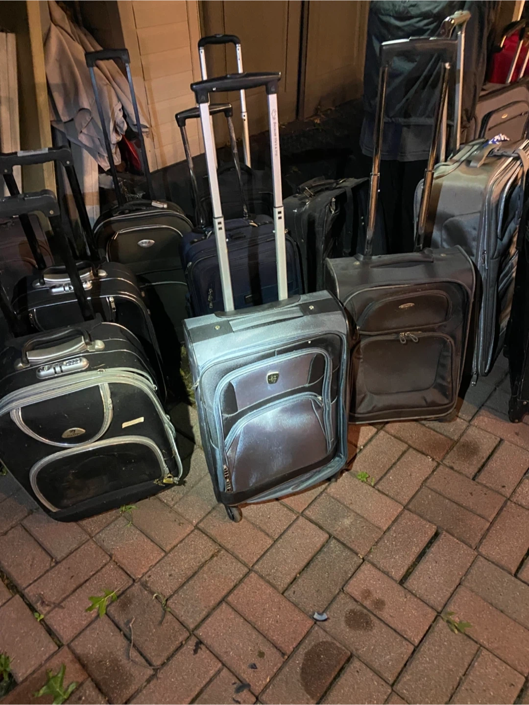 Selling a variety of used luggage pieces in different sizes and colors. They're all functional and ready for your next trip! Some may show signs of wear, but they're still in good working condition