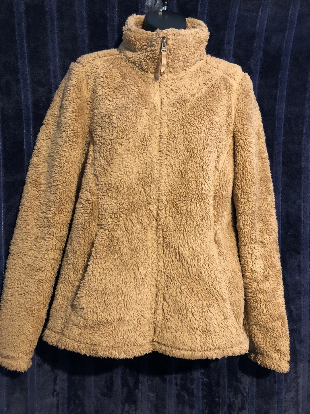 Selling a Cloudveil women's fleece jacket in a size small. It's a cozy and warm jacket, perfect for layering or wearing on its own during cooler days. The material is soft and fuzzy.