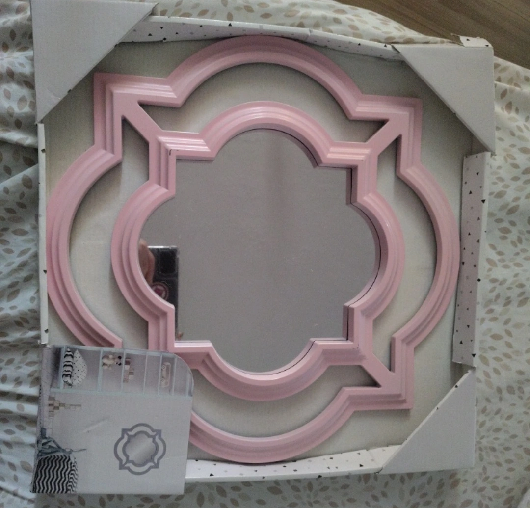 #cleanout Pink Quatrefoil Mirror - New in Box!