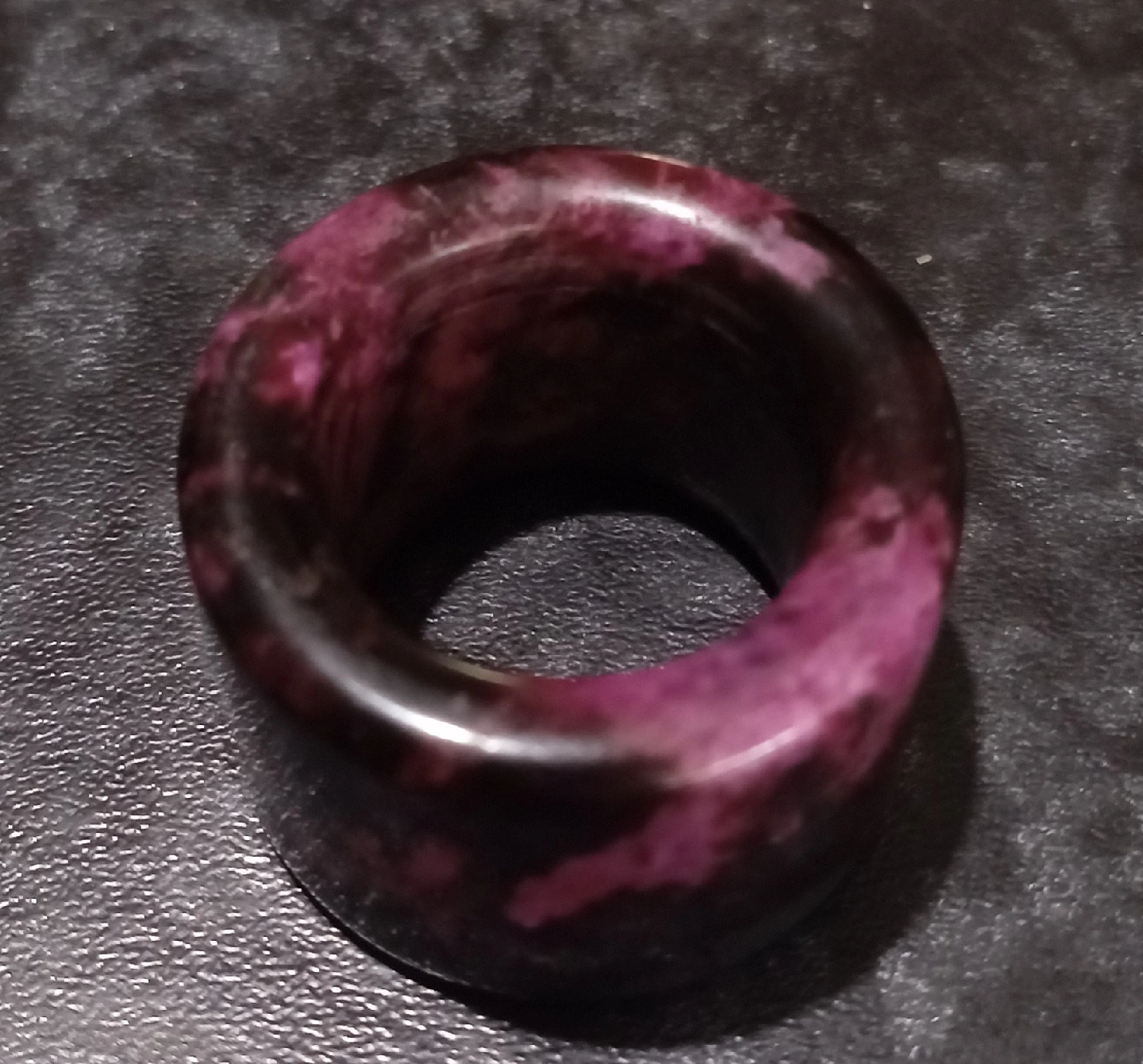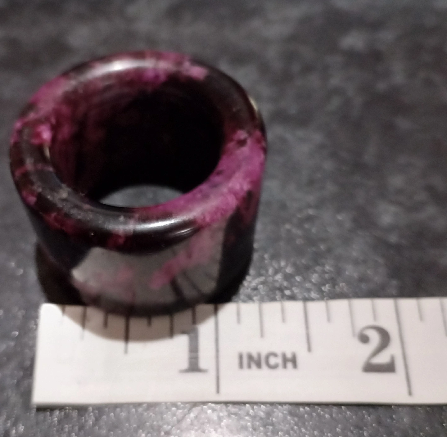 A beautiful pink and black stone large thumb ring. It's in great condition and has a smooth, polished finish and a unique pattern, $5, pick up only, please see my other listings.