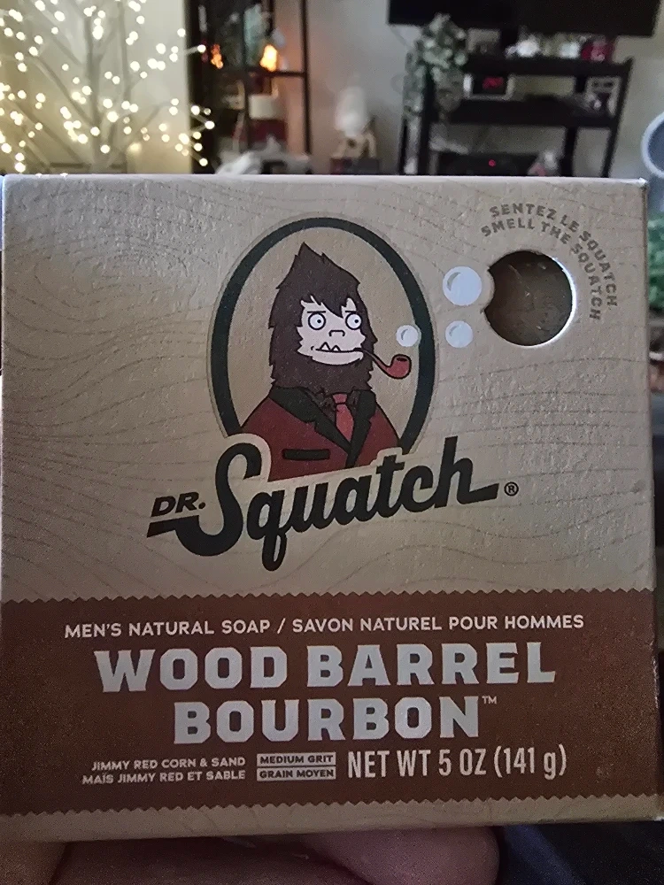 Selling a brand new Dr. Squatch Wood Barrel Bourbon soap! It's a men's natural soap with a medium grit. Net weight is 5 oz (141 g). Sentez le Squatch!